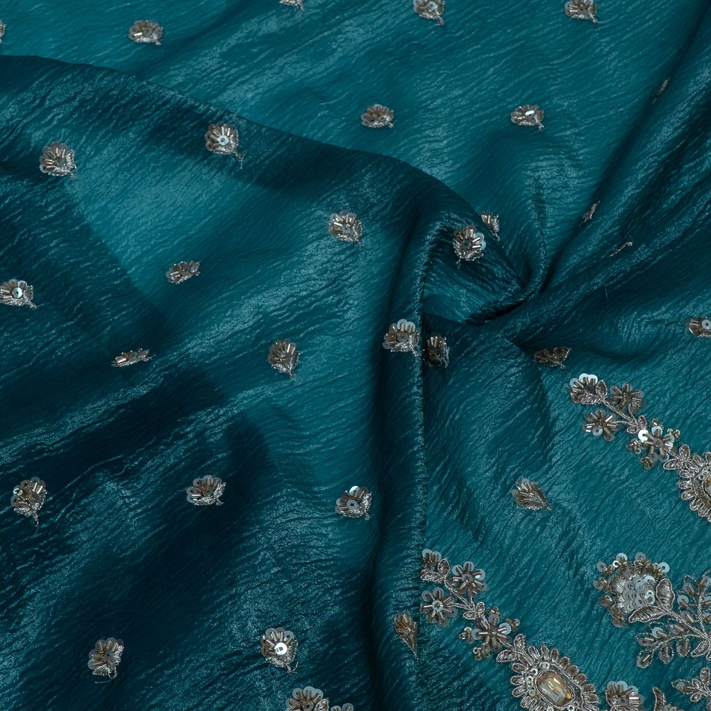 Jimmy Choo Crush Embroidered Fabric is a stylish and premium textile known for its refined texture and elegant finish, making it an excellent choice for contemporary and occasion wear garments. The fabric offers a smooth feel with a graceful drape, enhancing the overall appeal of any outfit.