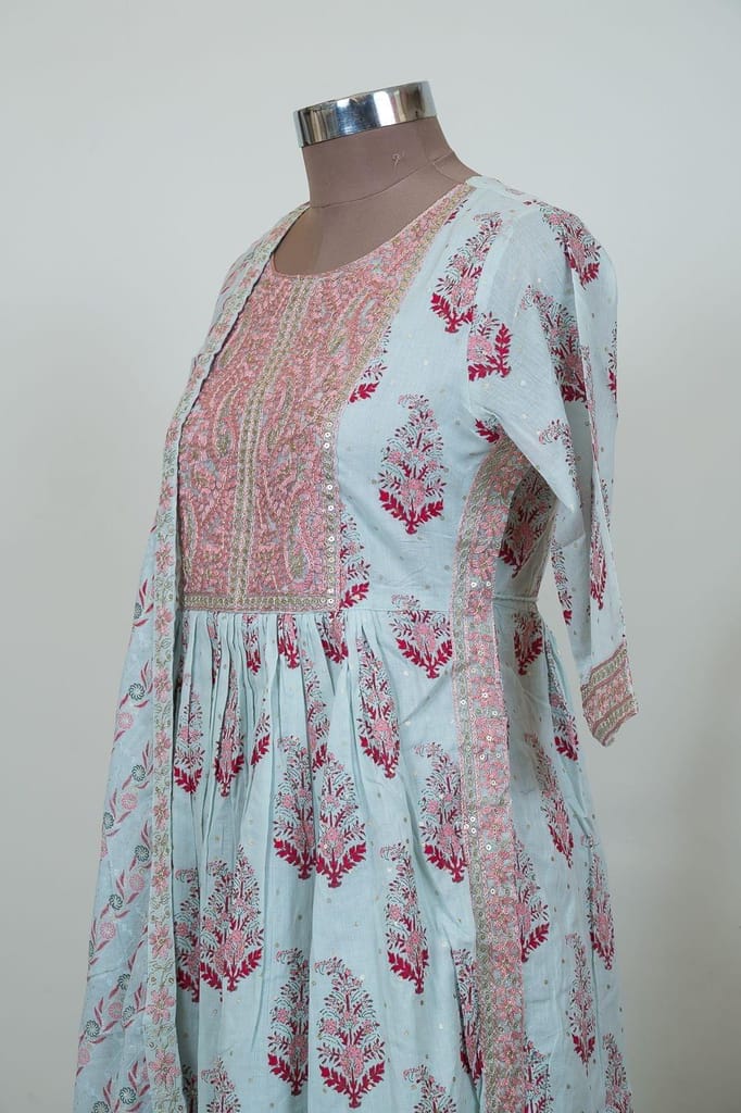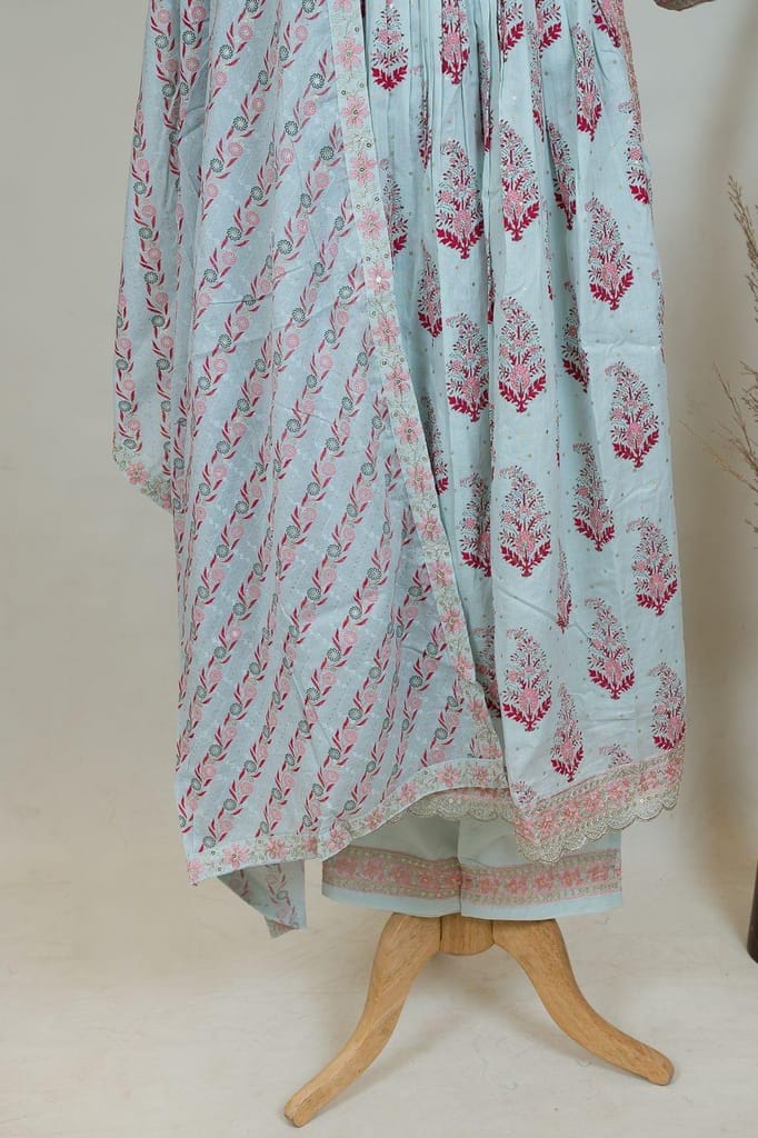 A well-crafted collection of is coming your way from the house of Fab Couture. Dipped in a Blue colour, the three-piece suit set looks elegant and graceful. The minimalistic suit set is ideal for any occasion be it attending a wedding or celebrating any festival.SKU:SAM35107