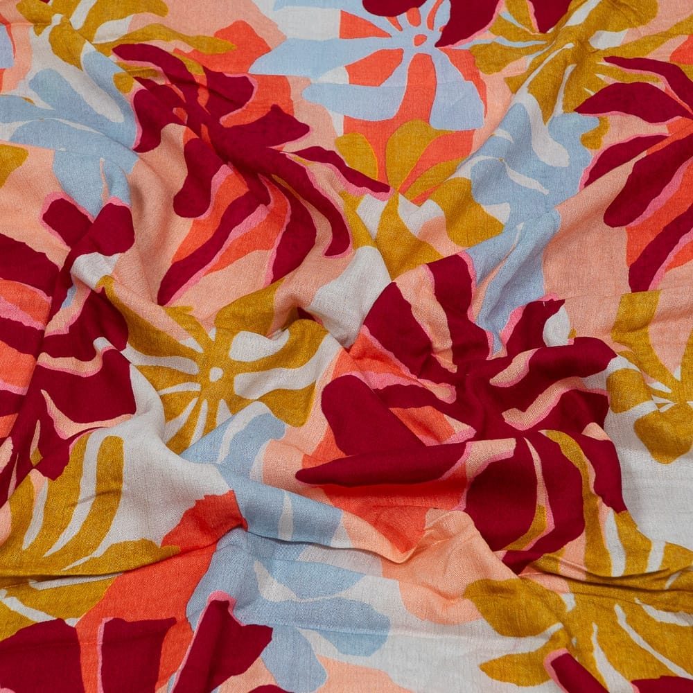 | Fabric Name | Sky Blue Color Cotton Rayon Crepe Digital Printed Fabric |