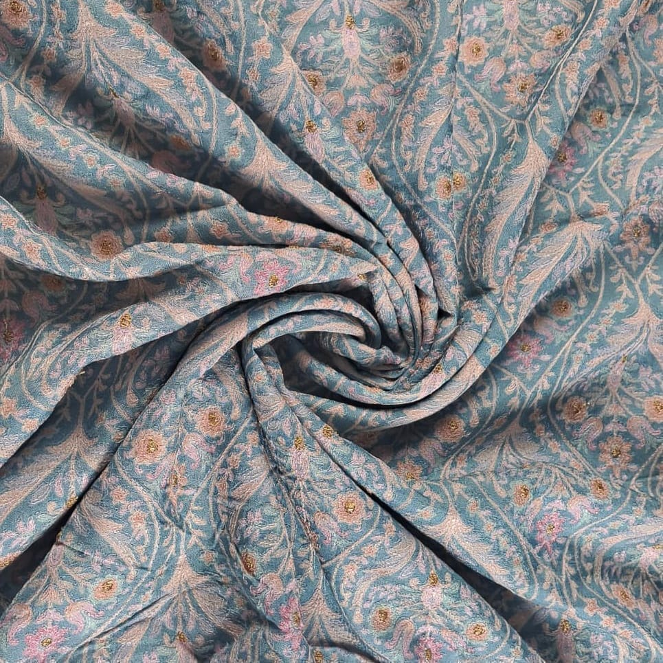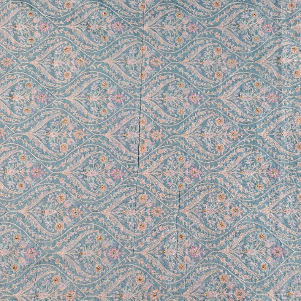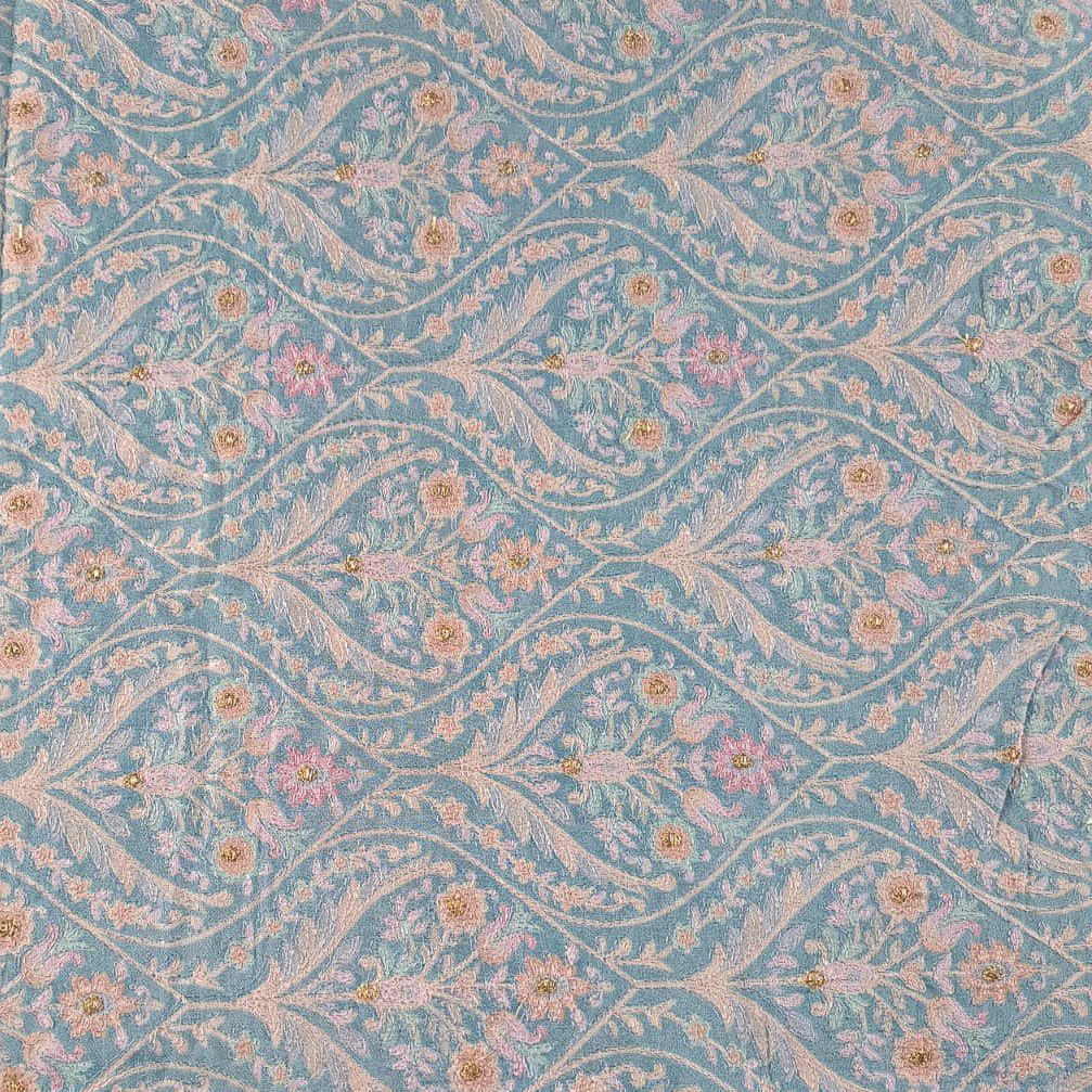 | Fabric Name | Sky Blue Color Dola Silk Print with Embroidered Fabric |