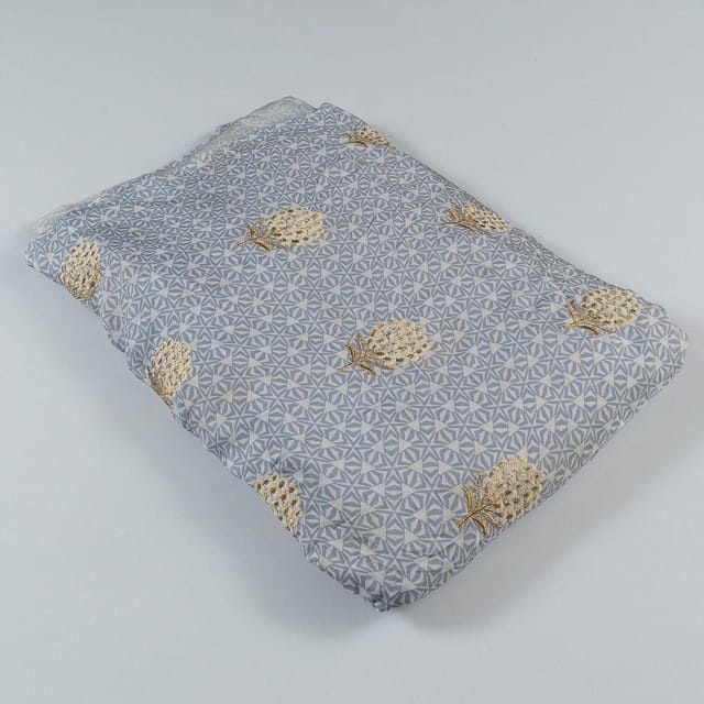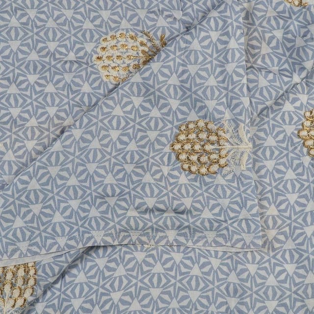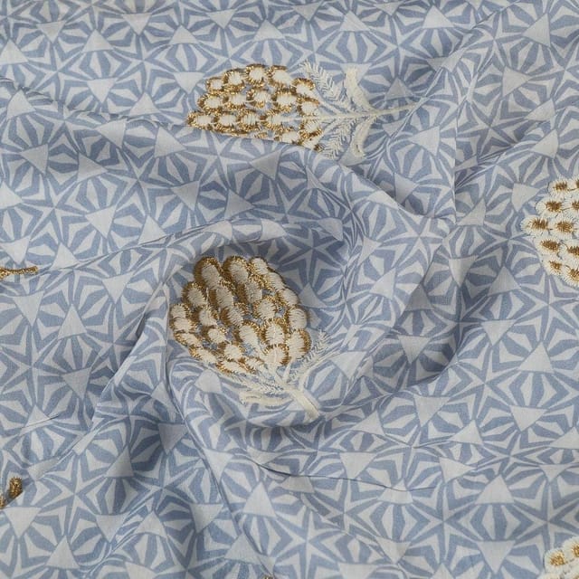 | Fabric Name | Sky Blue Color Muslin Print With Embroidery |