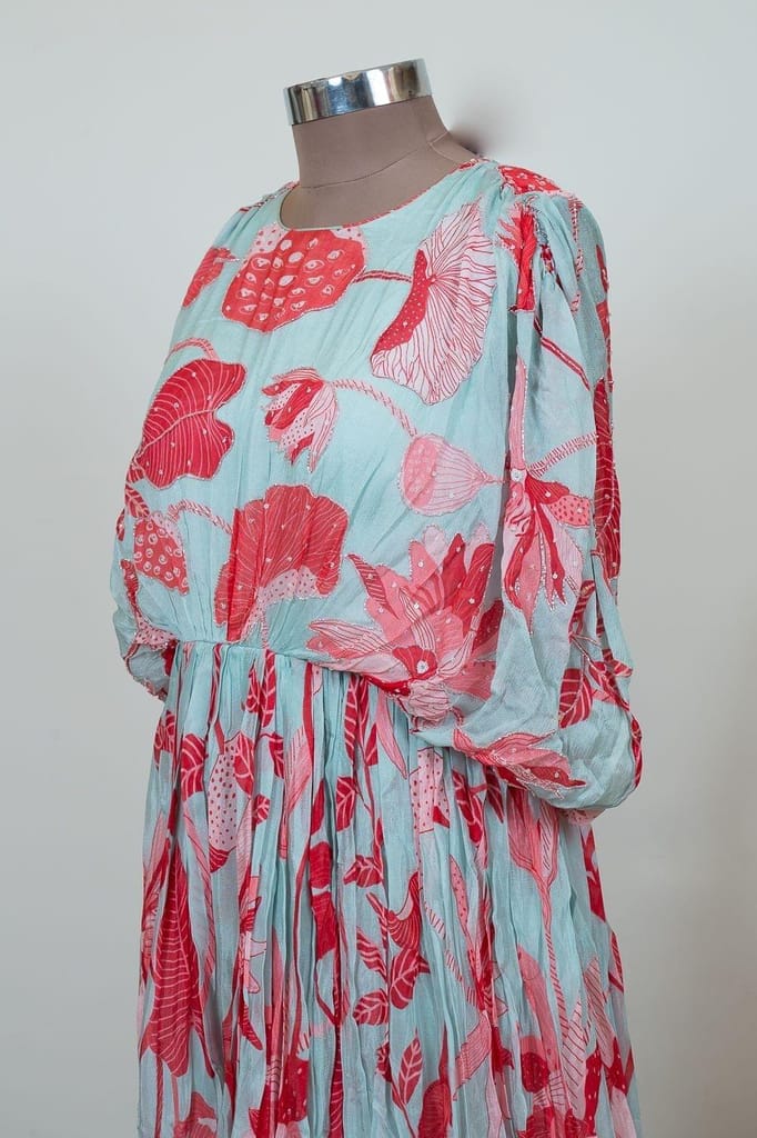 A well-crafted collection of Chinon-Chiffon is coming your way from the house of Fab Couture. Dipped in a Sky, the one-piece suit set looks elegant and graceful. A floral pattern is scattered all the shirt. The minimalistic suit set is ideal for any occasion be it attending a wedding or celebrating any festival.SKU:SAM30580
