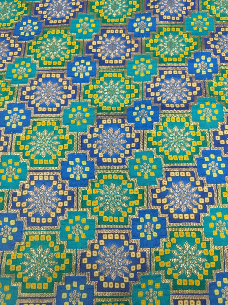 | Fabric Name | Teal Blue Jacquard Positioned Print On Dola Silk |