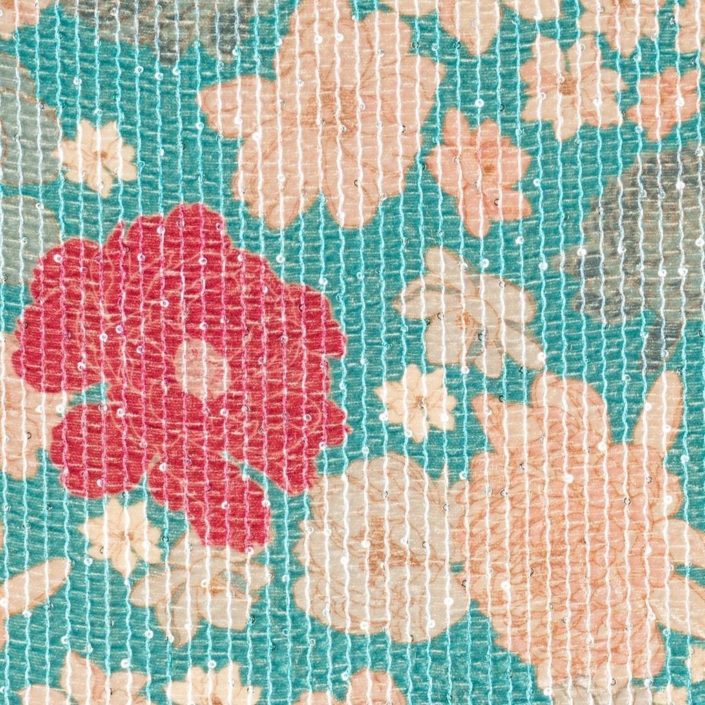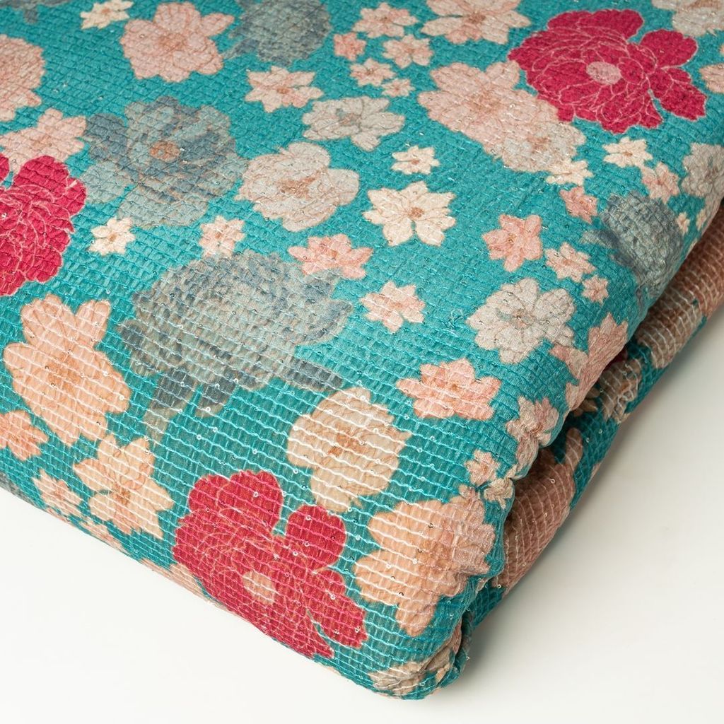| Fabric Name | Teal Velvet Fabric with Embroidered Sequins and Floral Design Prints |