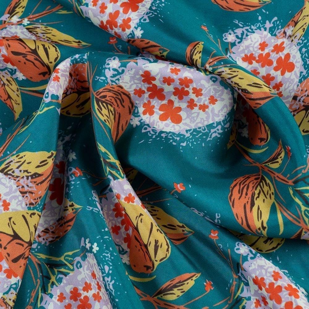 | Fabric Name | Teal Green Color Habutai Silk Printed Fabric |