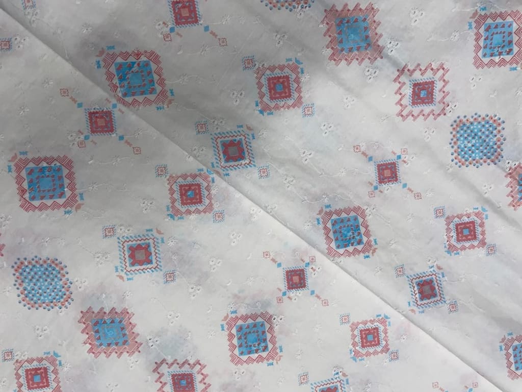 | Fabric Name | White & Peach Abstract Cotton Hakoba Chikan Fabric |