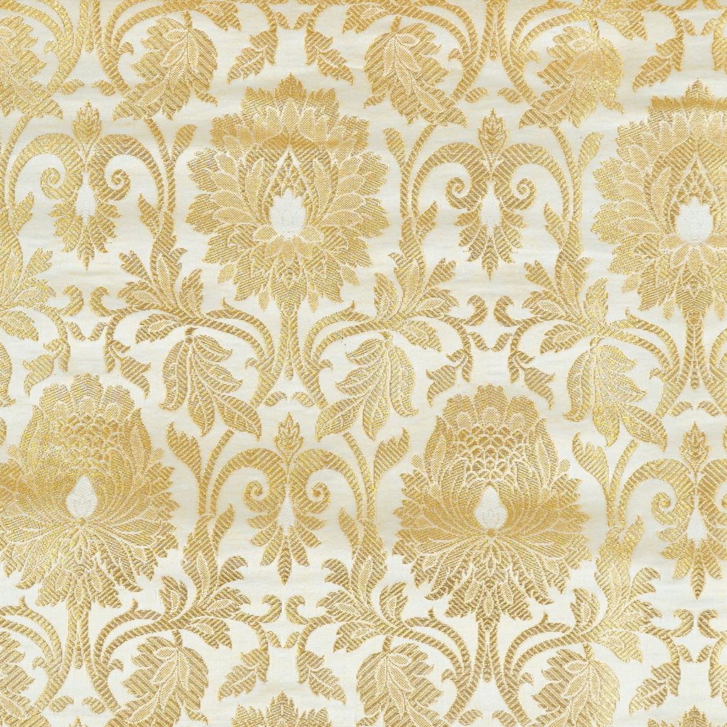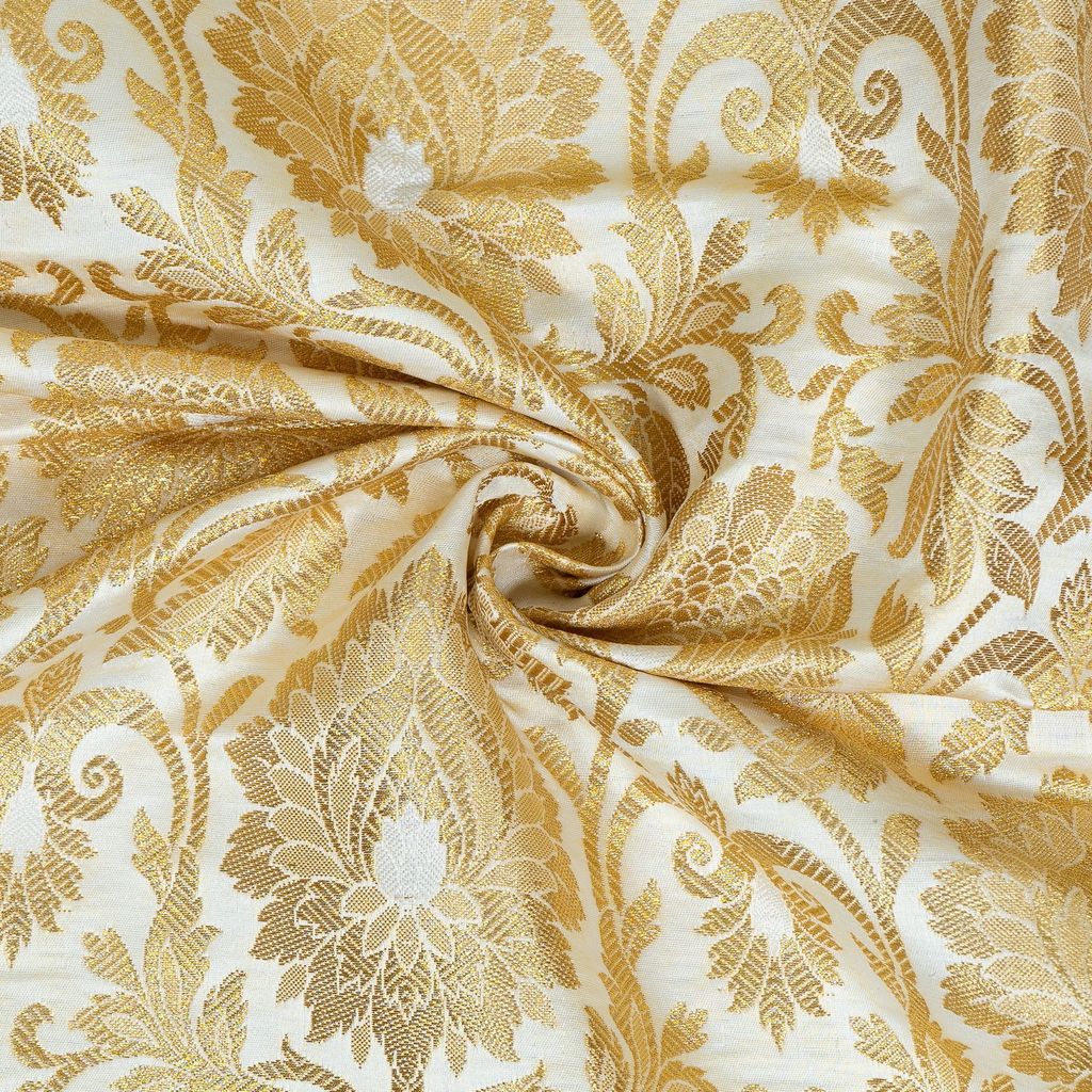 The house of Fab Couture presents an intricately decorative brocade fabric. The floral motifs are woven throughout the length of the canvas. The vintage-inspired design comes with an appealing shine that can elevate any simple look. Doused in wine, red, purple, green, white and grey, the luxurious fabric can be crafted into a dramatic-sleeved blouse or a long A-line shirt or a lehenga skirt that will look charming. You can pick your favourite colour from the richly textured fabric. SKU:100236746A