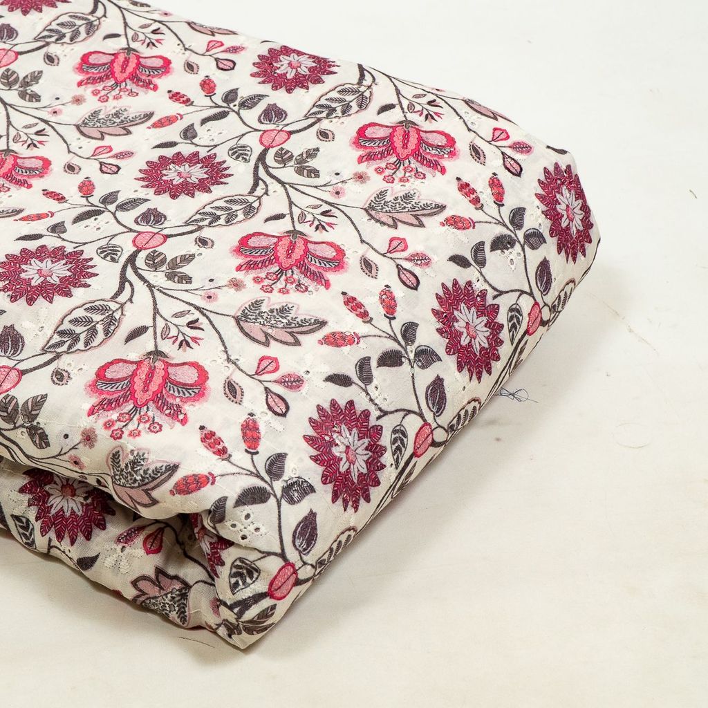 | Fabric Name | White Color Cotton Chikan Floral Print with Embroidered Fabric |