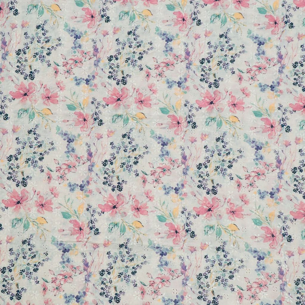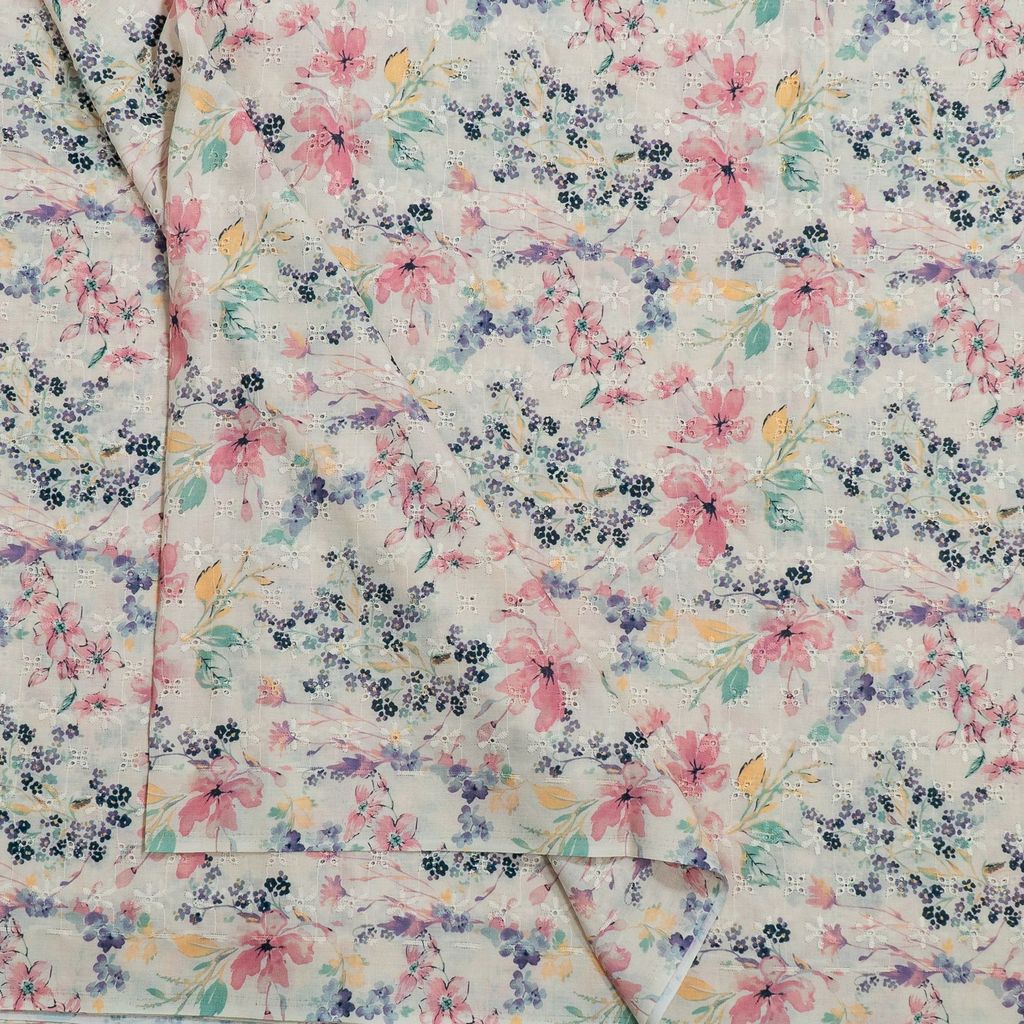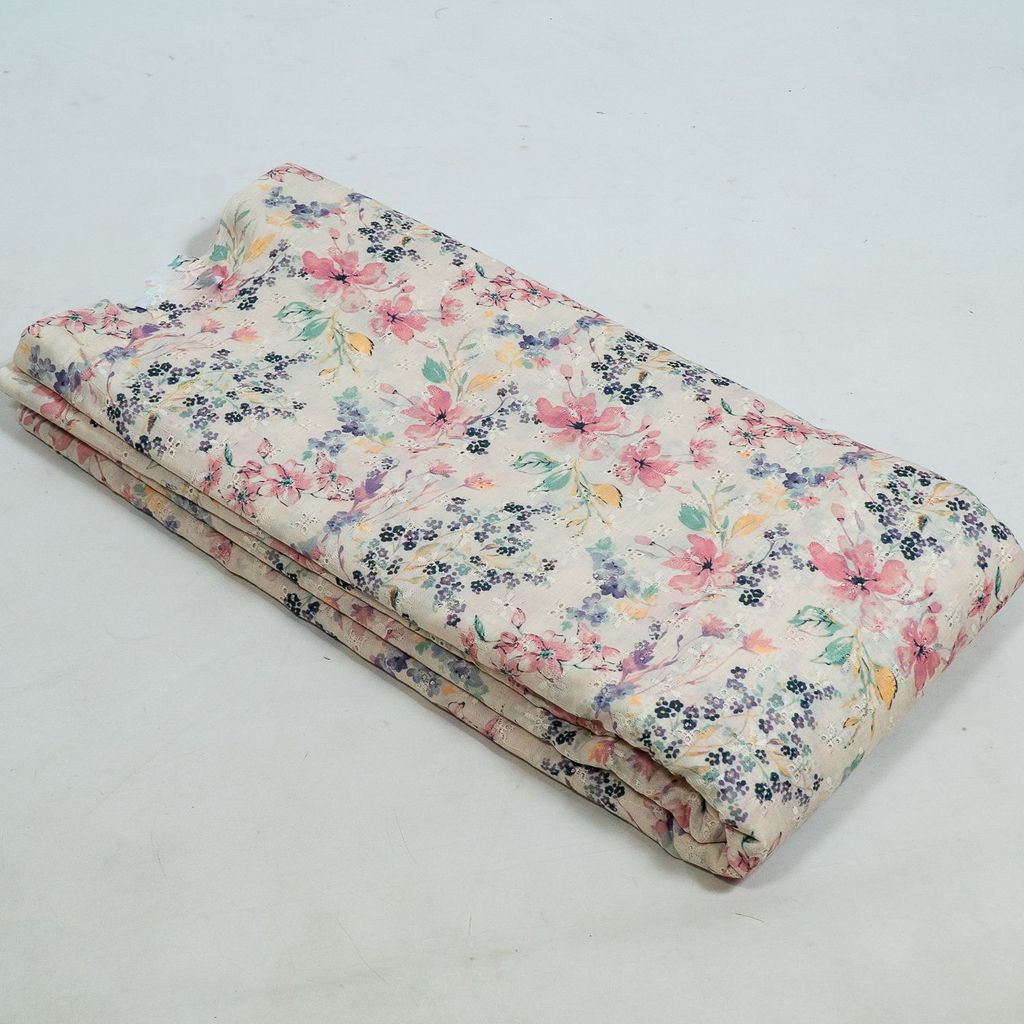 | Fabric Name | White Color Cotton Chikan Floral Print with Embroidered Fabric |