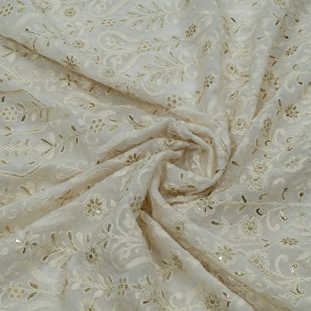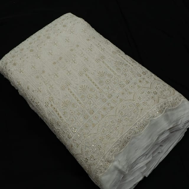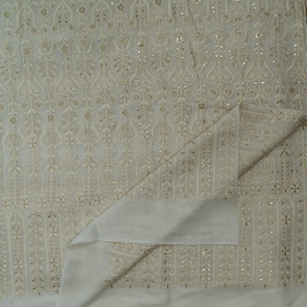 | Fabric Name | White Color Dyeable Georgette Thread Embroidered Fabric |