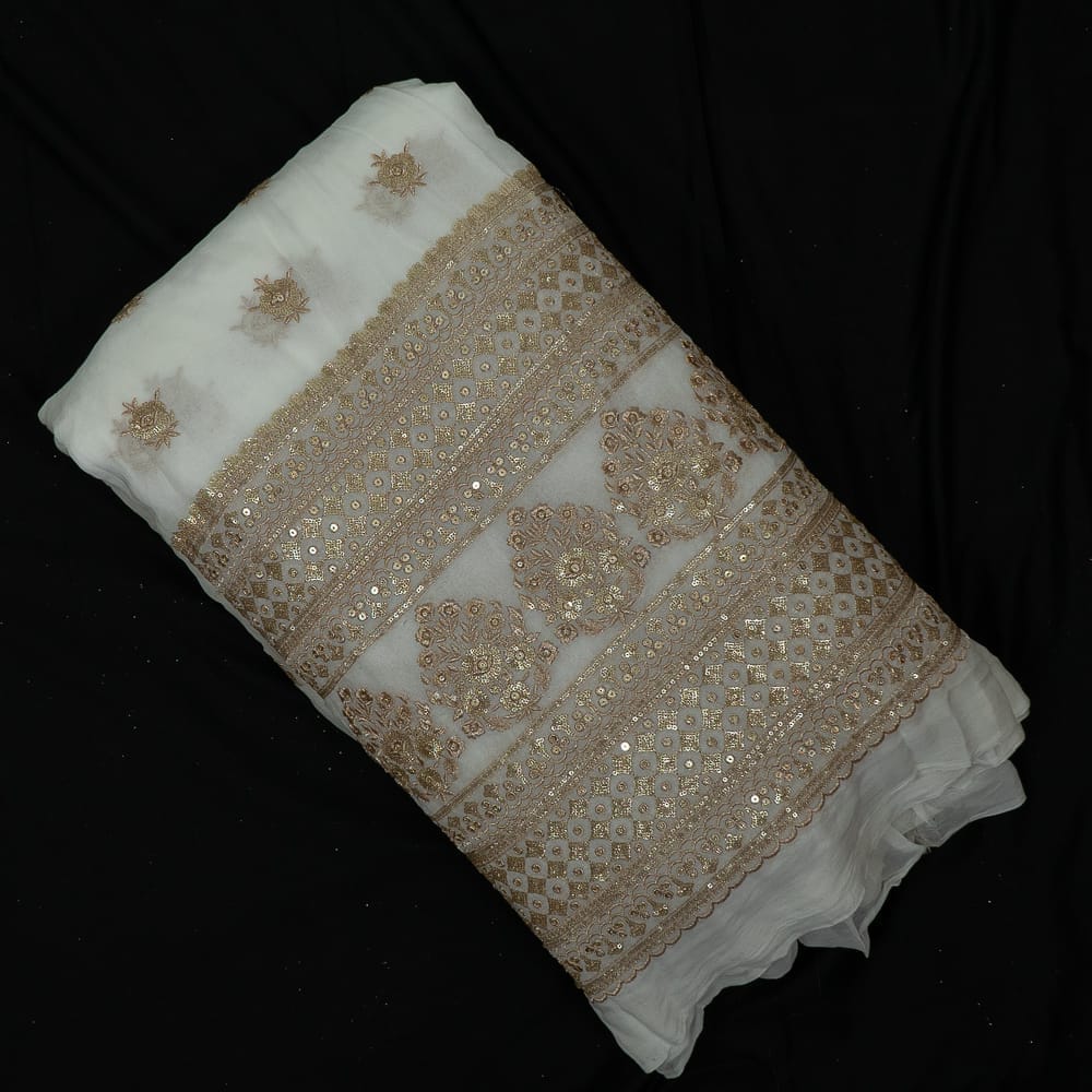 | Fabric Name | White Color Dyeable Georgette Zari Embroidered Fabric |