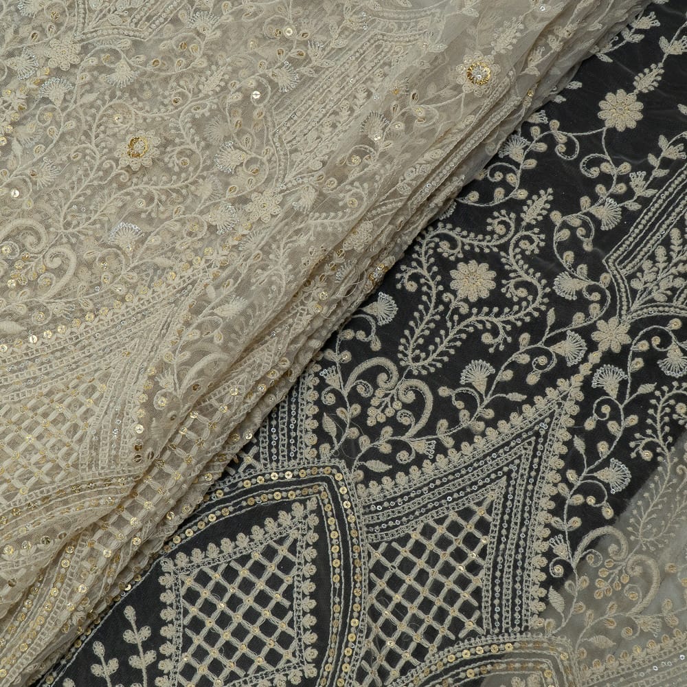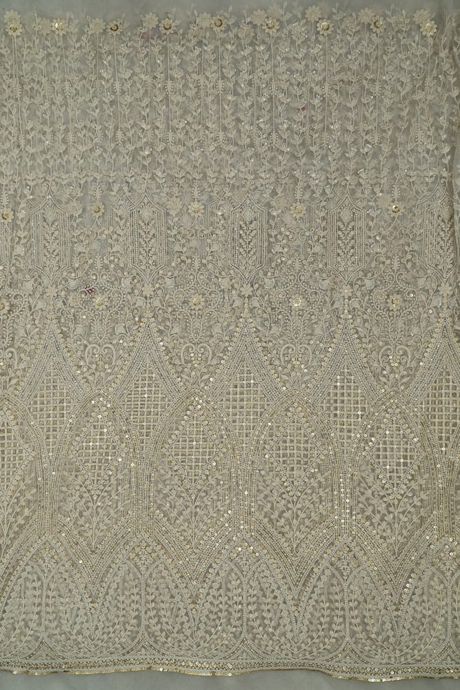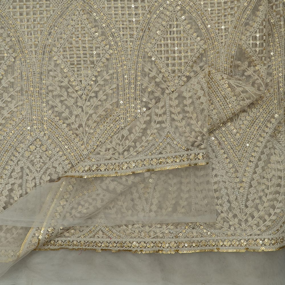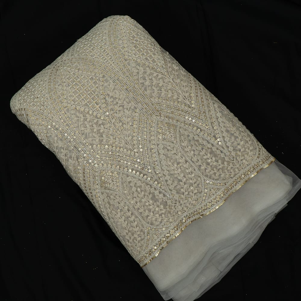 | Fabric Name | White Color Dyeable Net Sequins and Thread Embroidered Fabric |