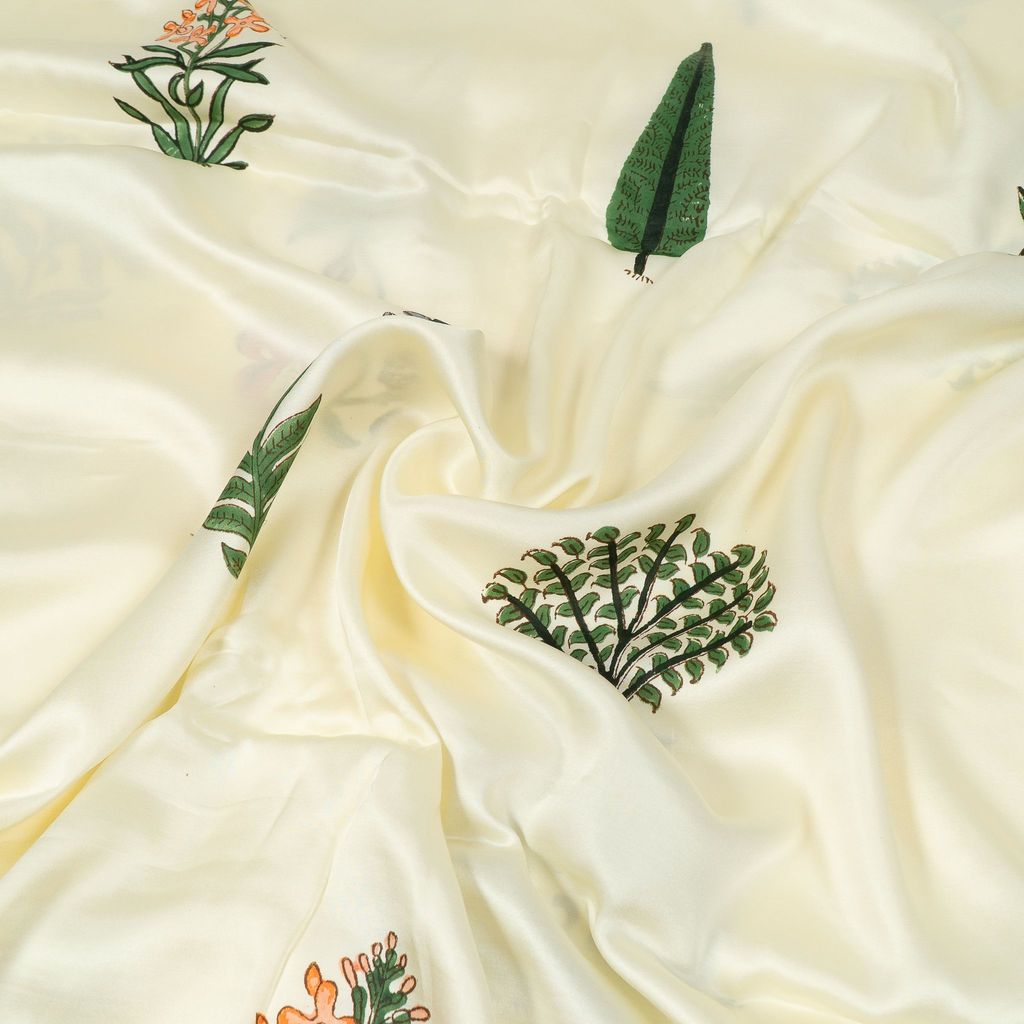 | Fabric Name | White Color Modal Satin Printed Fabric |