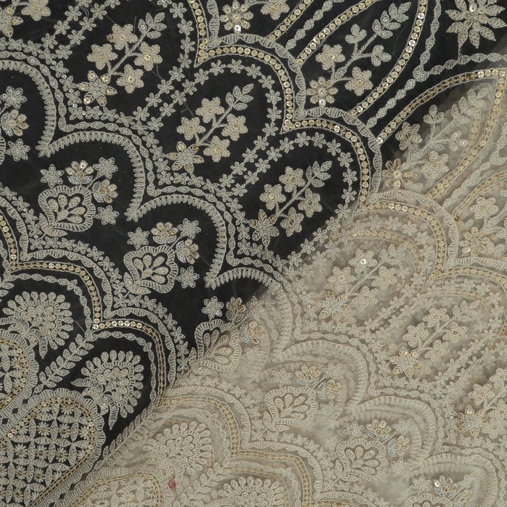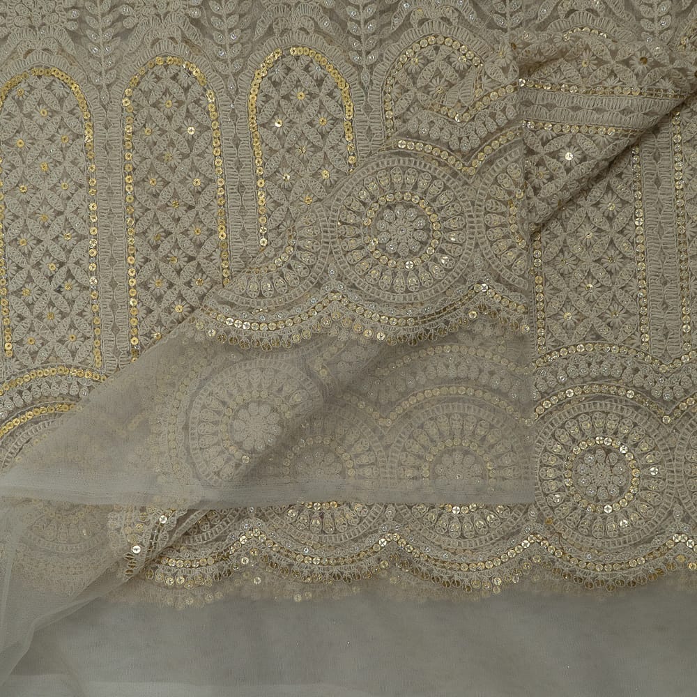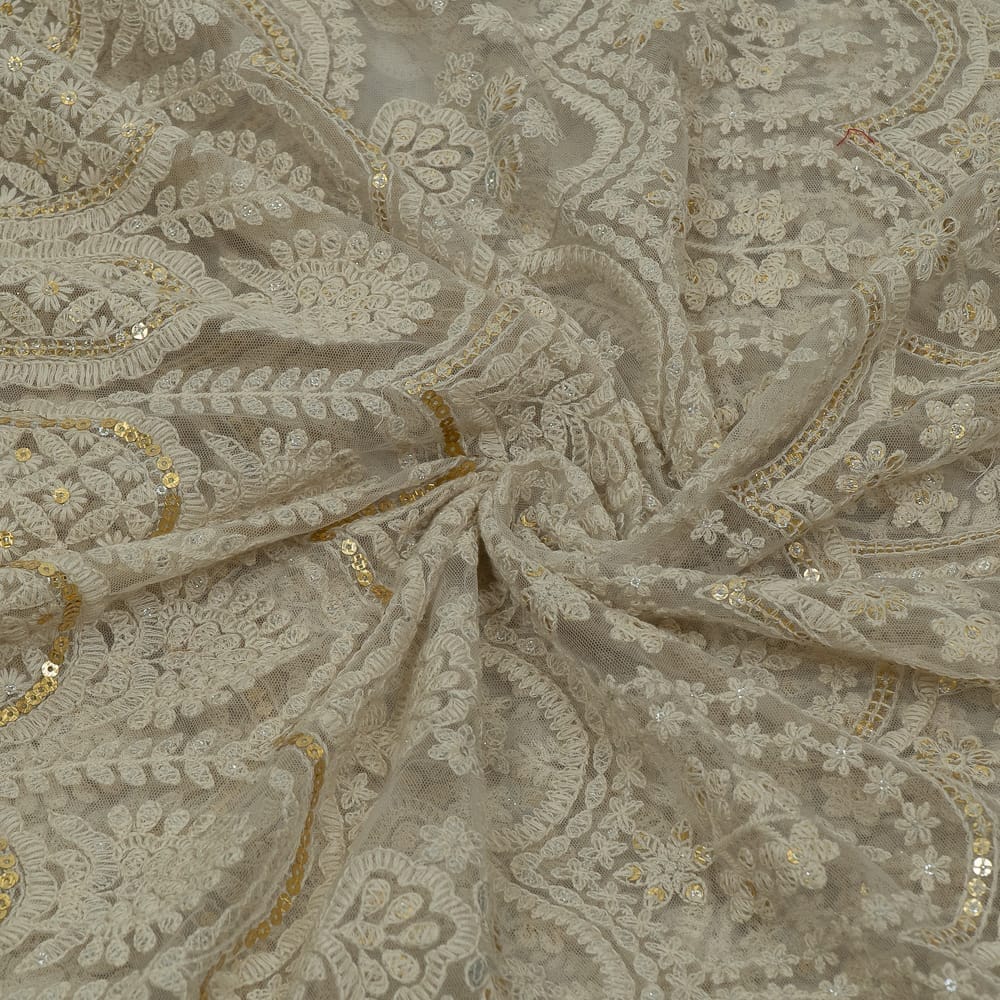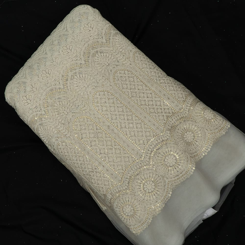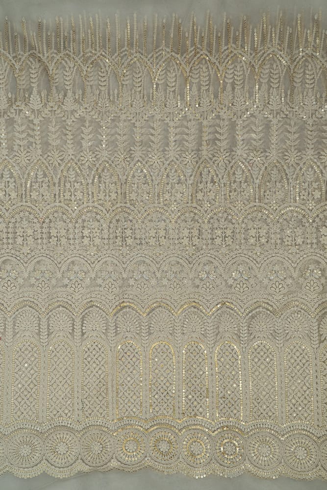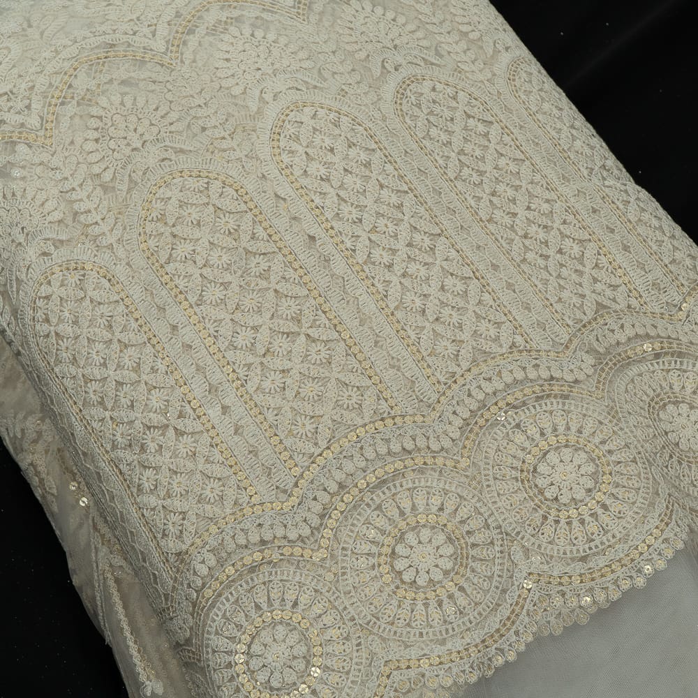 | Fabric Name | White Color Net Sequins and Thread Embroidered Fabric |