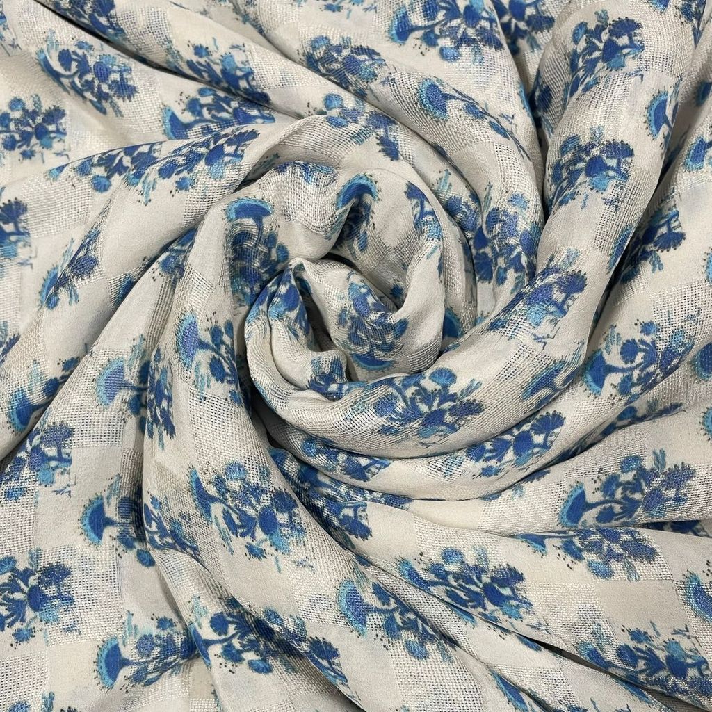 | Fabric Name | White Color Pure Silk Checknet Printed Fabric |