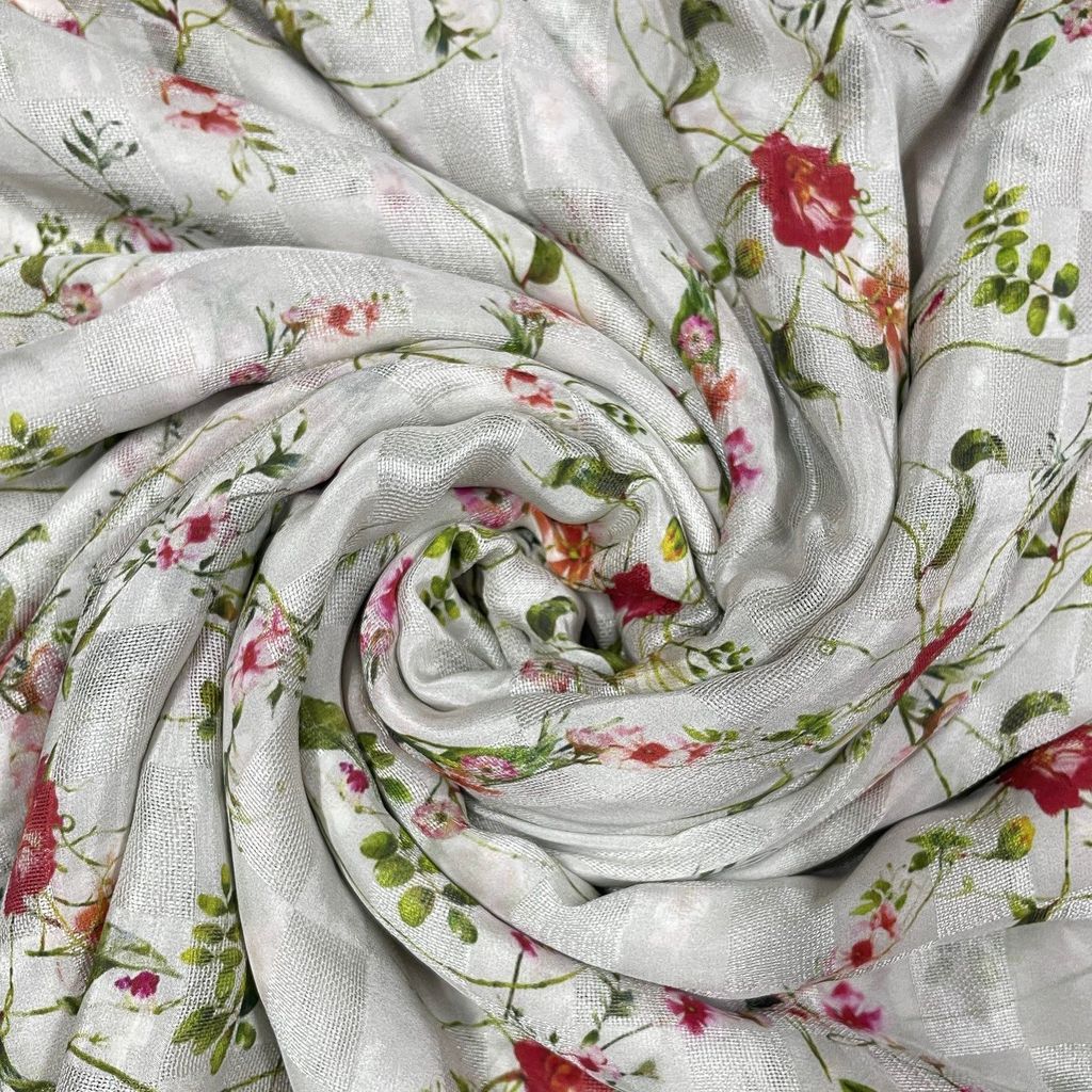 | Fabric Name | White Color Pure Silk Checknet Printed Fabric |