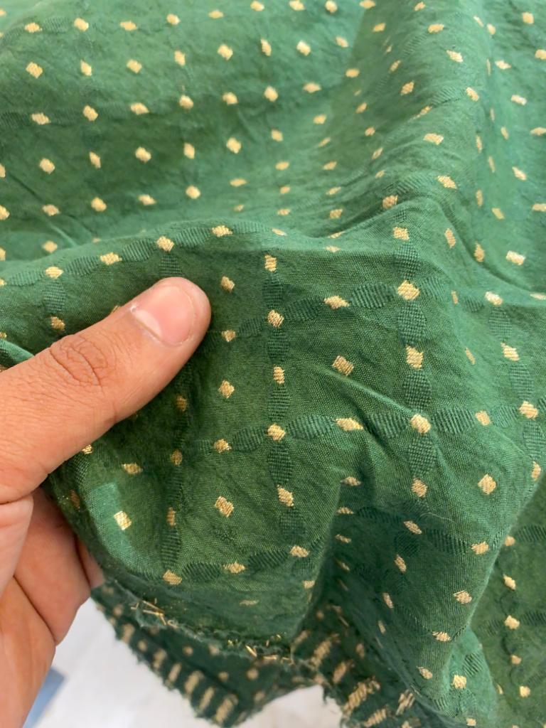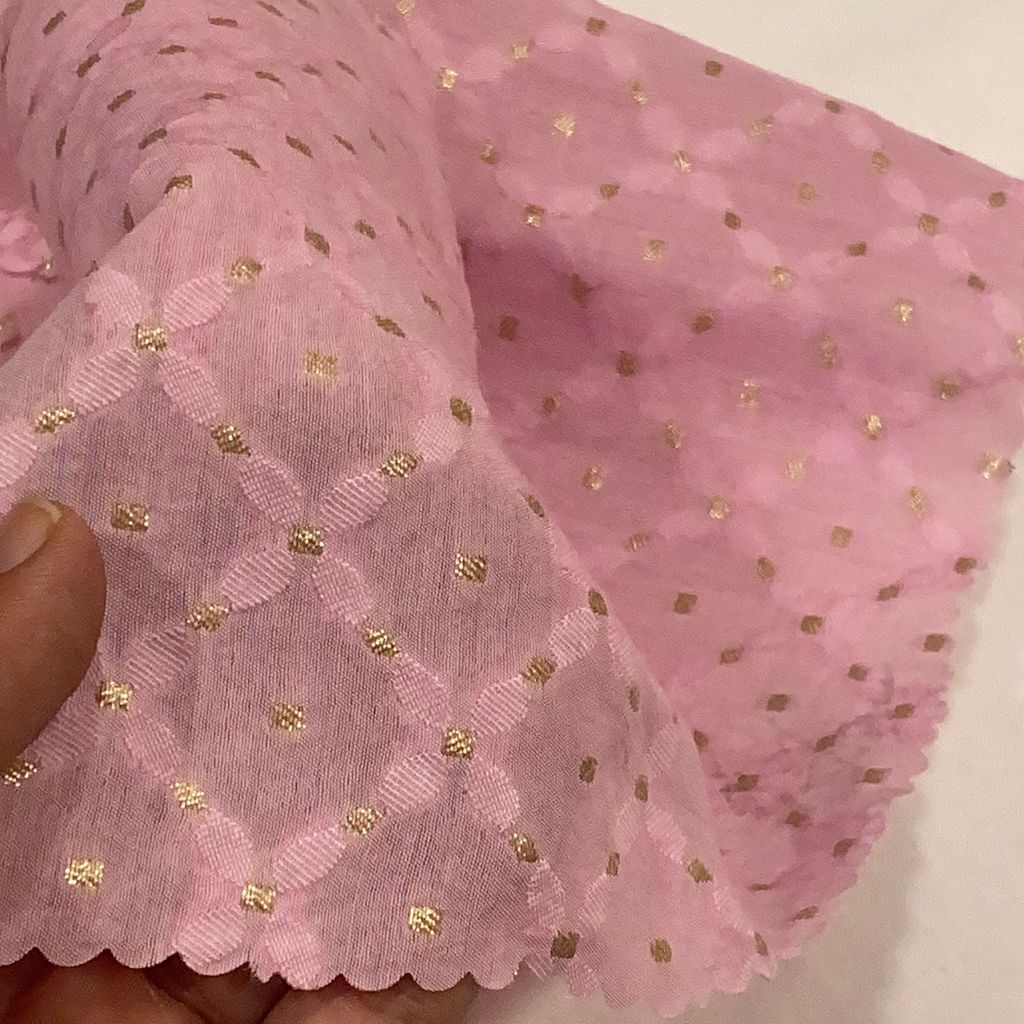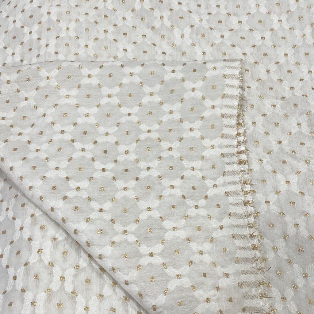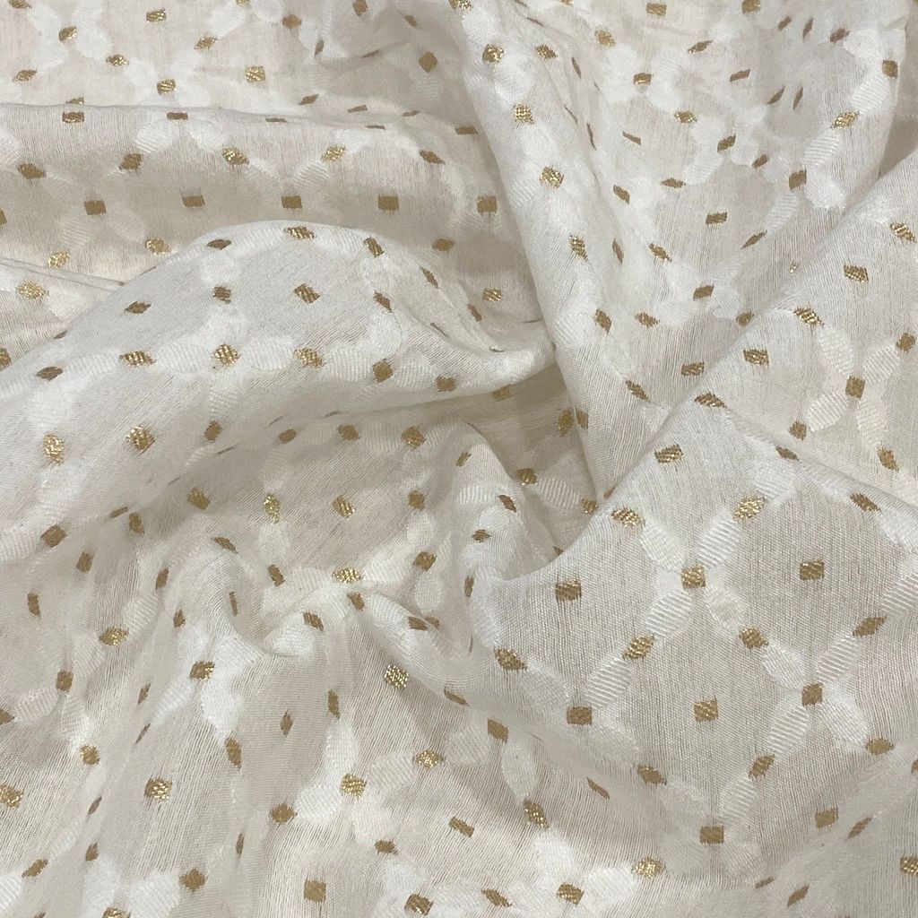 White Dyeable Muslin Jacquard, This dyeable muslin jacquard is good for kurtas, lehengas, skirts and salwar kameez as well. Set your imagination running and get this beauty in your wardrobe. This unisexsual Fabric is perfect for Summers and can be dyed in pastel as well as dark colours easily. SKU: 100232252