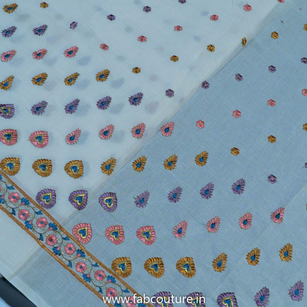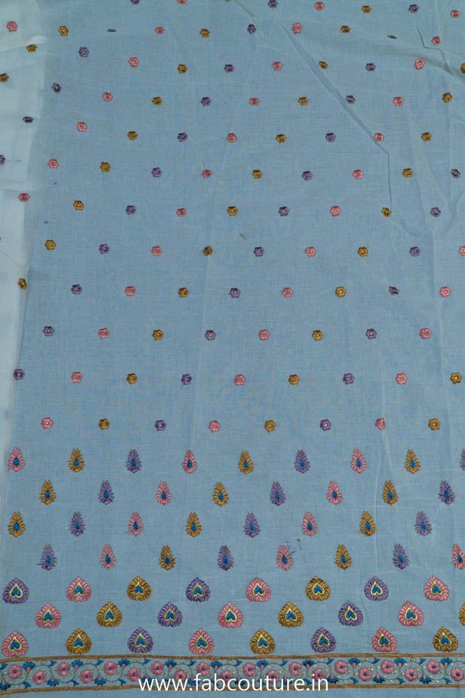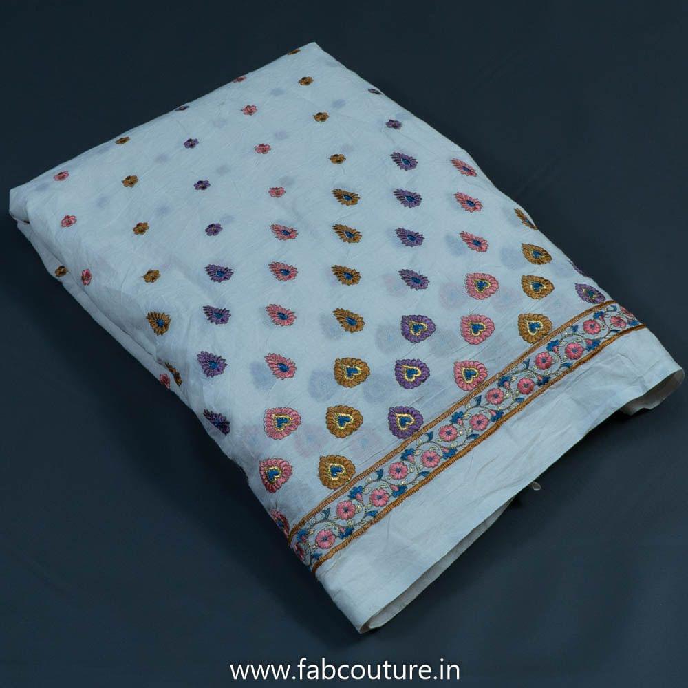This fabric is from FabCouture Cotton Embroideries and the base is soft and breathable 60's cambric with soft pastel coloured floral bootis over the length of the fabric which are dense towards the daman and scatter on the top. They are perfect for kurtis, kurtas, summer dresses, trousers and plazzos. SKU: 100212408 COTTON EMB D.NO 11925