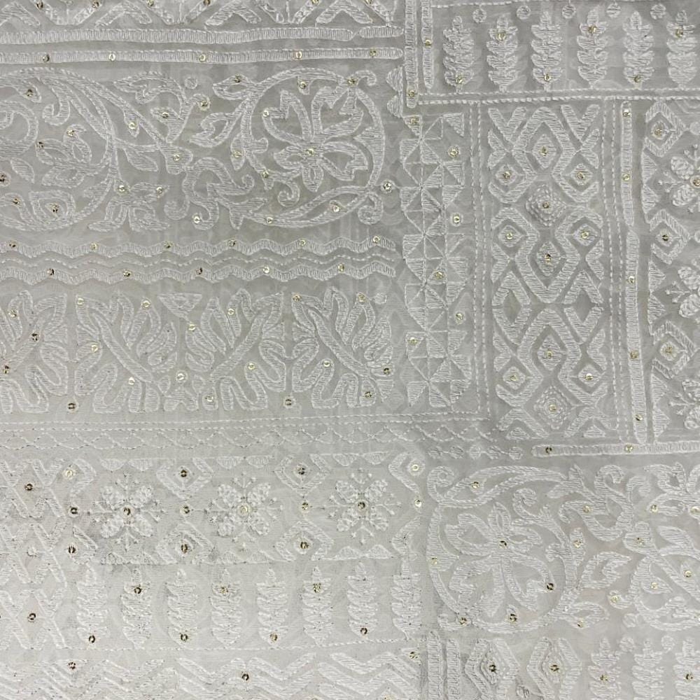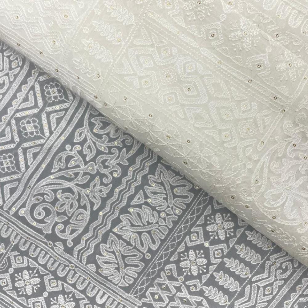 | Fabric Name | White Dyeable Abstract Georgette Embroidered Fabric |