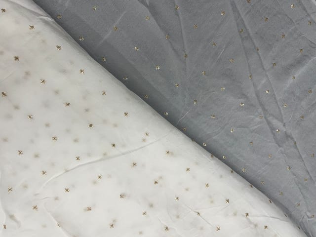 | Fabric Name | White Dyeable Butti Embroidered Chinnon Chiffon Fabric |