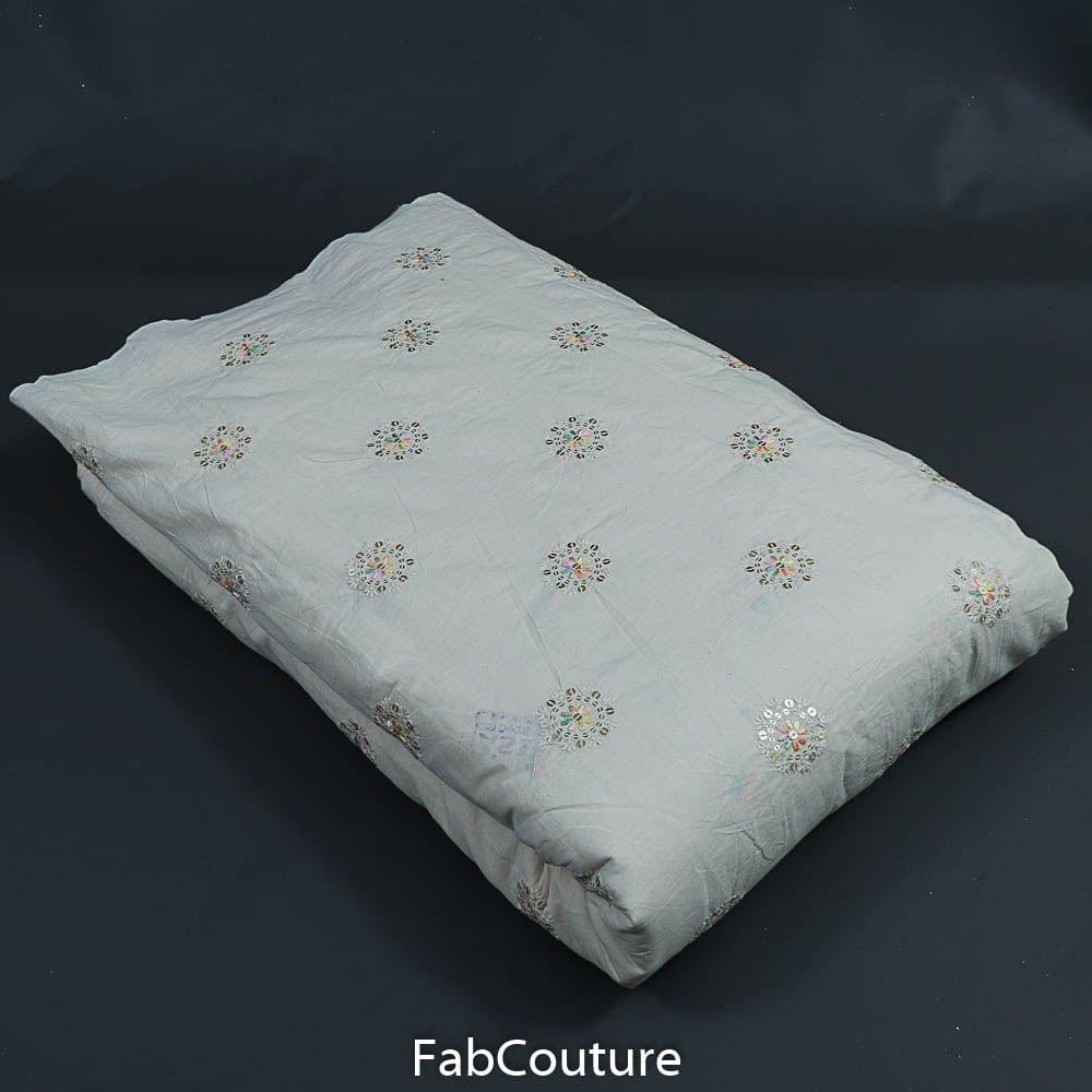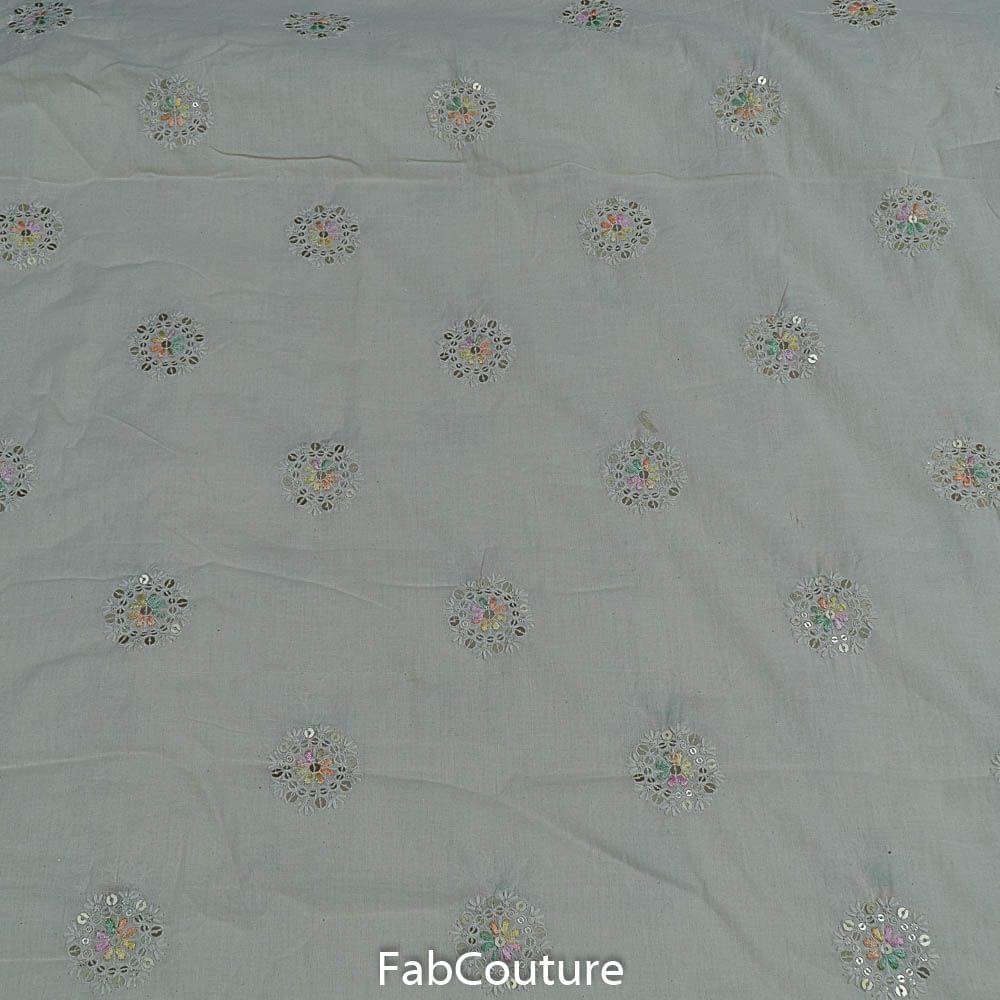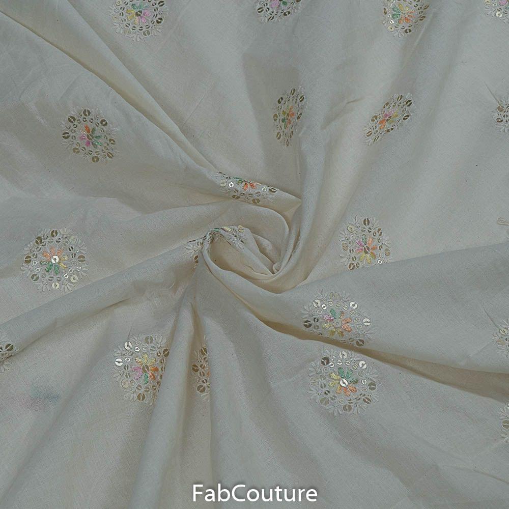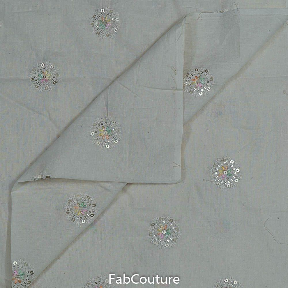 Organic cora cotton fabric from FabCouture Cotton Embroidery Collection with embroidery in a round motif pattern is a rich and gorgeous fabric for summer occasion wear and dresses. SKU: 100211699 COTTON EMB 41994