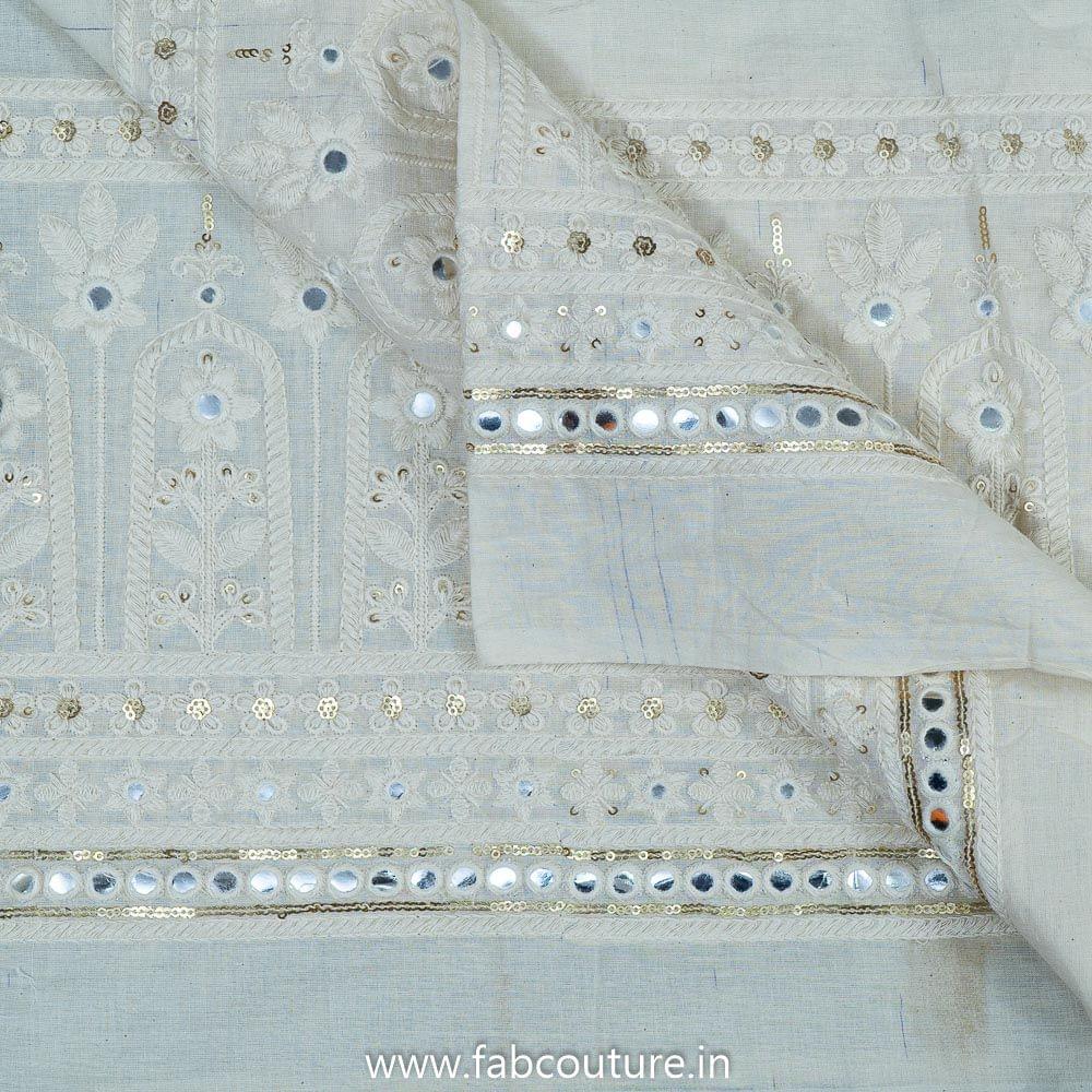 This fabric is from FabCouture Cotton Embroidery Collection and the base is 60's cambric with floral thread border in the daman of the fabric with mirror details in between which makes it a beautiful fabric. SKU: 100212147 COTTON EMB 4465/5660