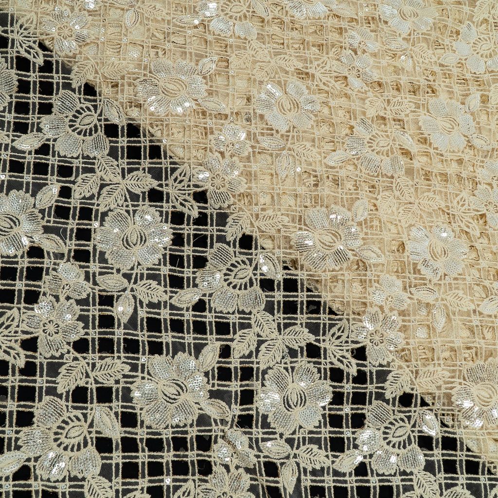 Transform your designs with our exquisite dyeable net embroidered fabric, featuring delicate cut work and shimmering sequin floral patterns. This luxurious fabric is perfect for fashion designers and boutiques looking to create high-end, custom pieces with a touch of elegance. The lightweight net base offers a refined yet durable structure, ideal for bridal gowns, couture dresses, and evening wear. Its dyeable feature allows you to customize the fabric to any shade, providing endless possibilities for creating unique, bespoke collections. Elevate your creations with this versatile fabric that blends intricate craftsmanship with limitless design potential. SKU: 100243697, DNO: 44