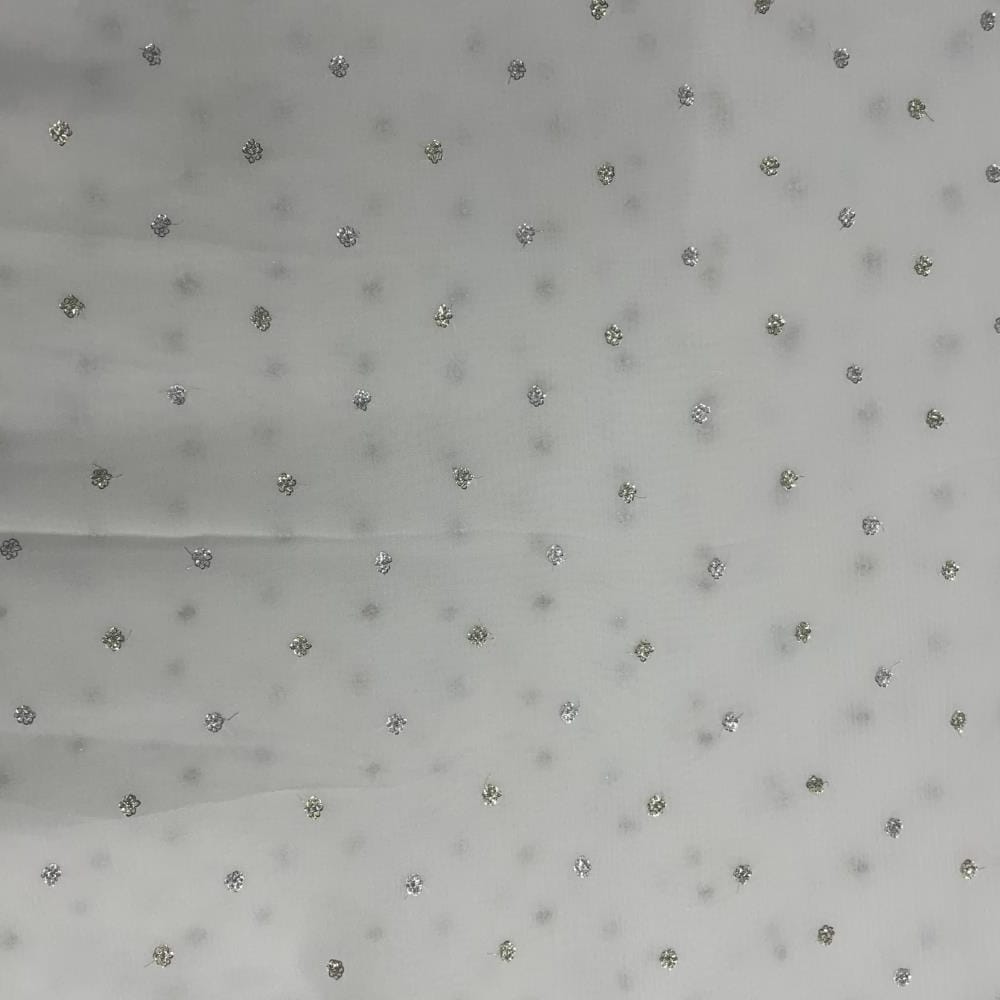 | Fabric Name | White Dyeable Dots Chinon Embroidered Fabric |