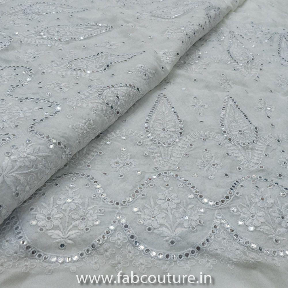 | Fabric Name | White Dyeable Faux Mirror Georgette Embroidery |