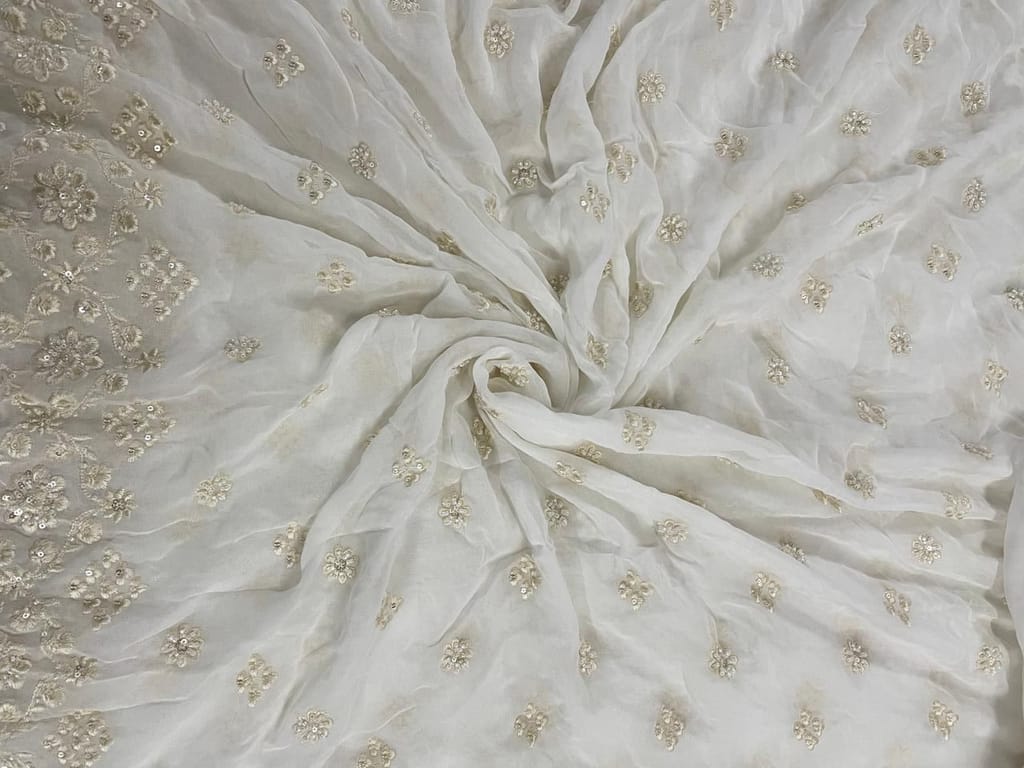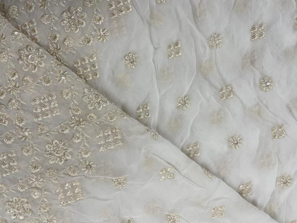 | Fabric Name | White Dyeable Floral Georgette Embroidery Fabric |