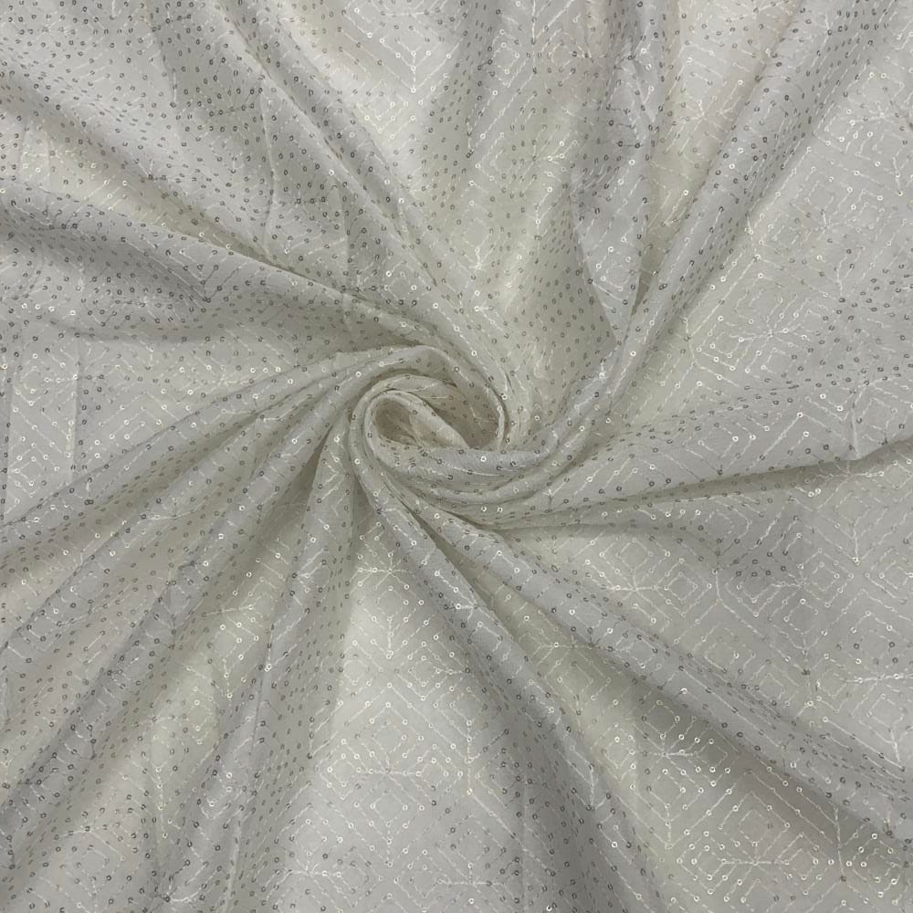 | Fabric Name | White Dyeable Geometric Chinon Embroidered Fabric |