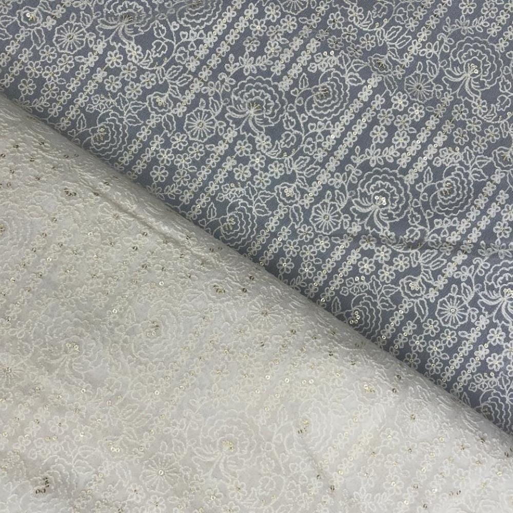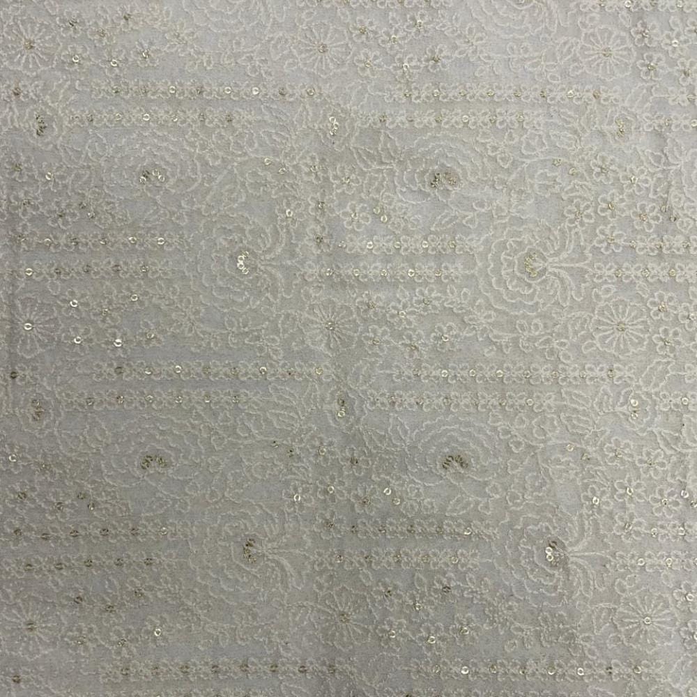 | Fabric Name | White Dyeable Geometric Georgette Embroidered Fabric |