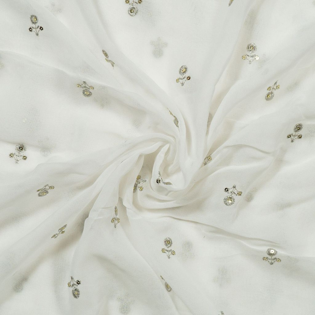 | Fabric Name | White Dyeable Georgette Booti Embroidered Fabric |