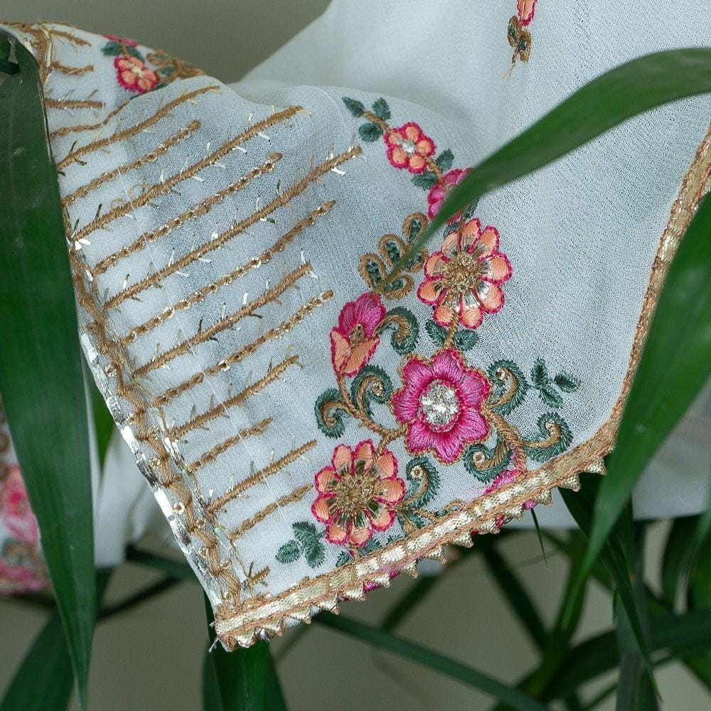 | Fabric Name | White Dyeable Georgette Embroidered Dupatta |