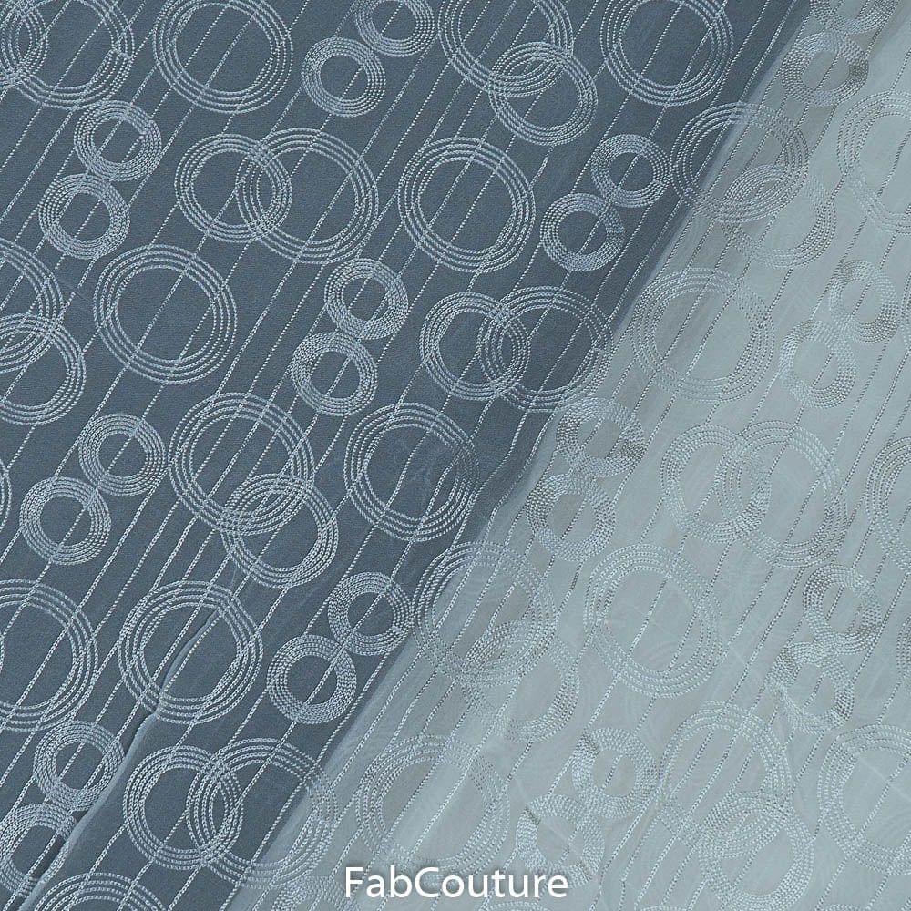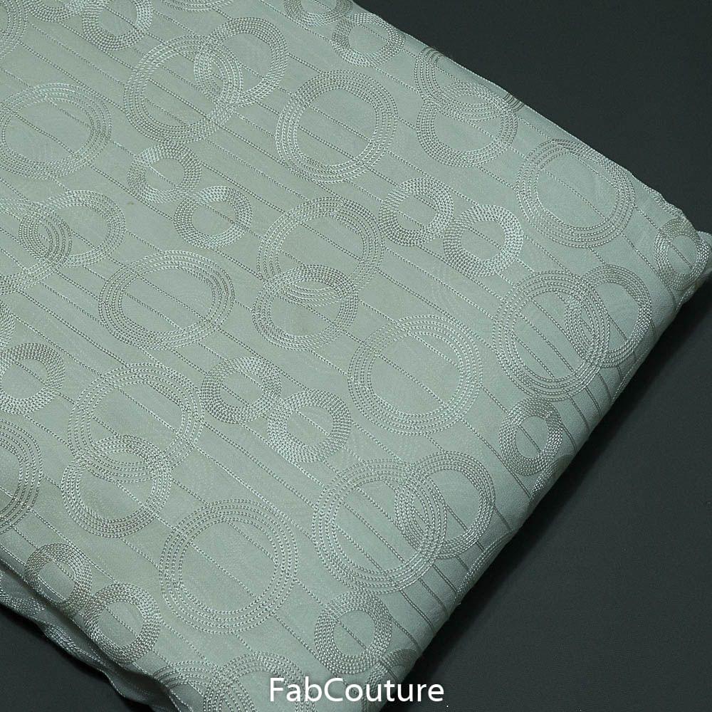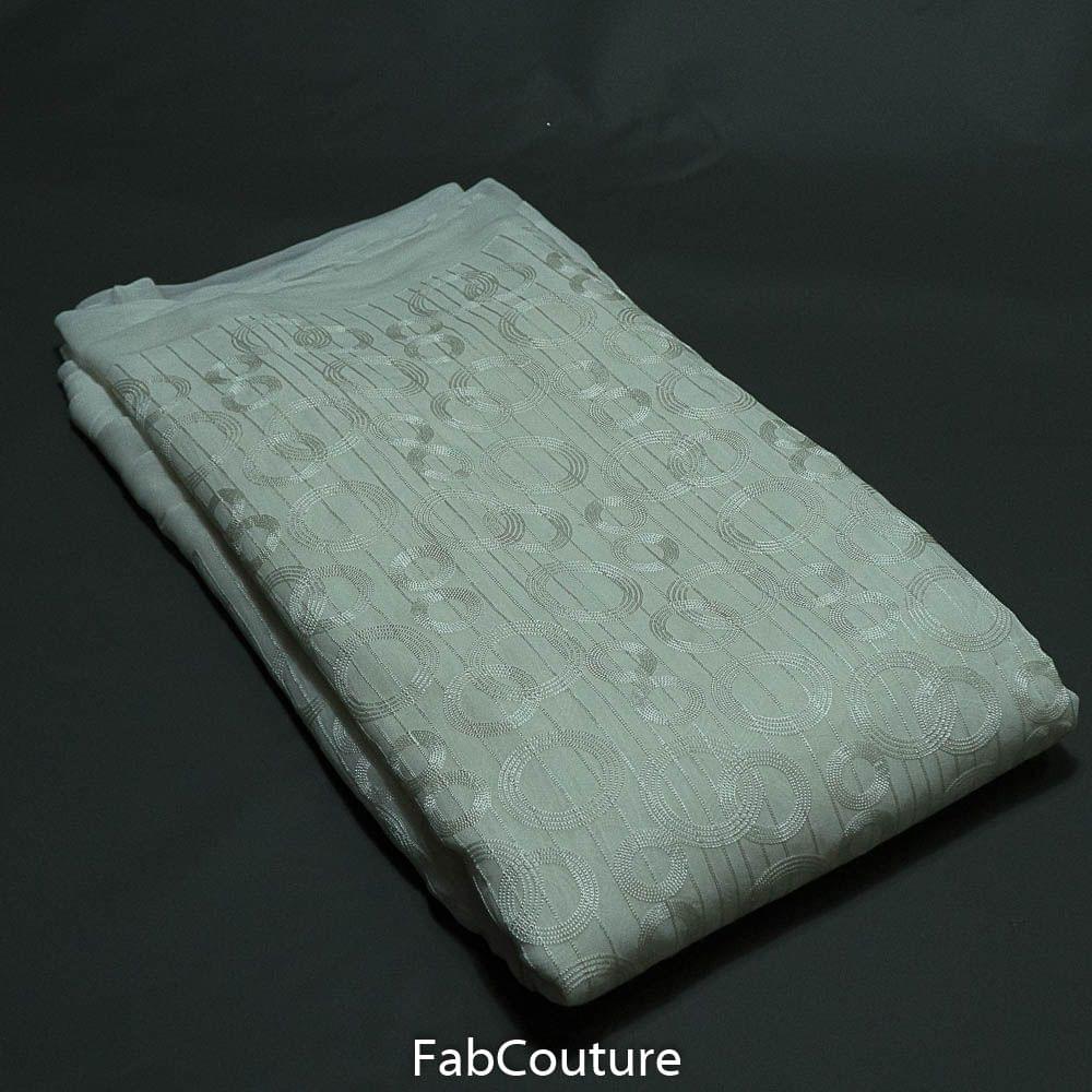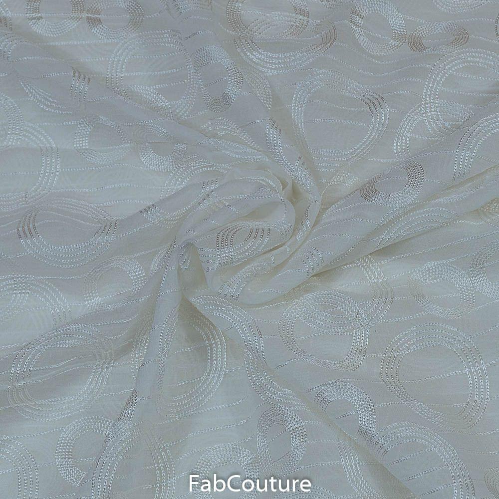 White dyeable georgette embroidery in thread work in a pattern of circles from FabCouture Georgette Embroidery Collection is a beautiful fabric for sarees, dupattas, kameez, lehenga etc. SKU: 10021865 GEO EMB D.NO 30694