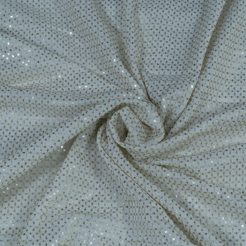 This fabric is from FabCouture Embroidery Collection and the base fabric is georgette with intertwined circular sequins pattern which is good for blouses, sarees, lehengas, dupattas, plazzos, shararas and all designer silhouttes. SKU: 100212046