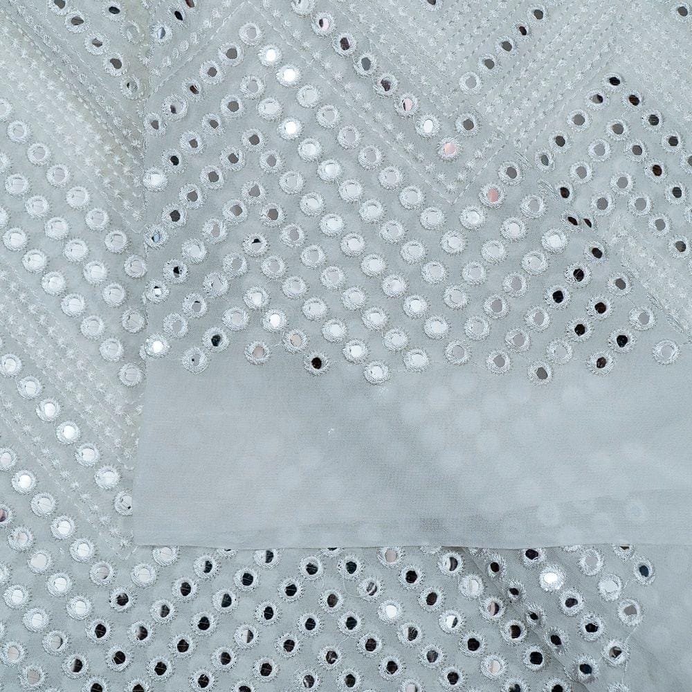| Fabric Name | White Dyeable Georgette Faux Mirror Embroidery |