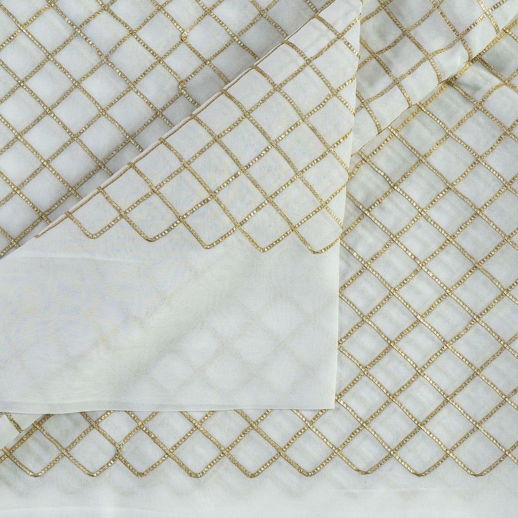 | Fabric Name | White Dyeable Georgette Gota Embroidey |