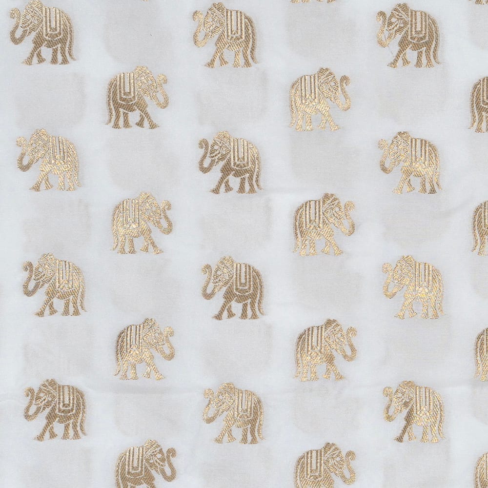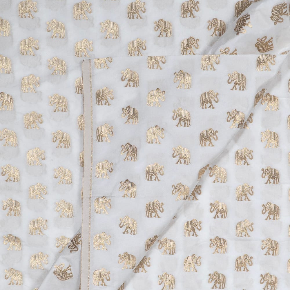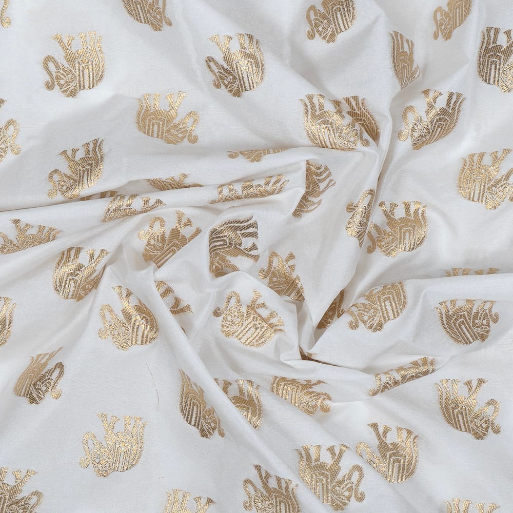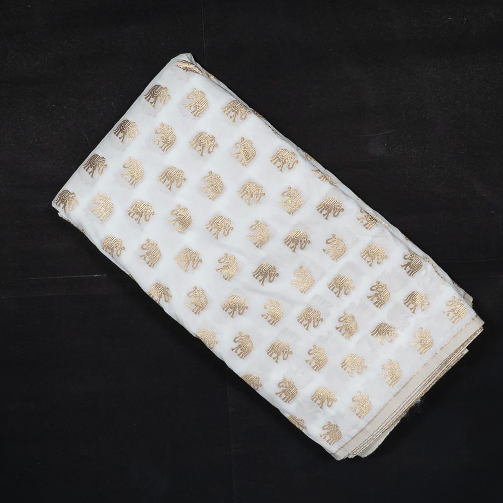 Discover elegance with our White Dyeable Katan Silk Jacquard Fabric. Crafted with finesse, this luxurious fabric radiates sophistication. Ideal for creating timeless attire, its smooth texture and intricate jacquard weave offer a perfect canvas for your creativity. Elevate your fashion statement with this exquisite fabric, tailored to perfection. SKU:1002453