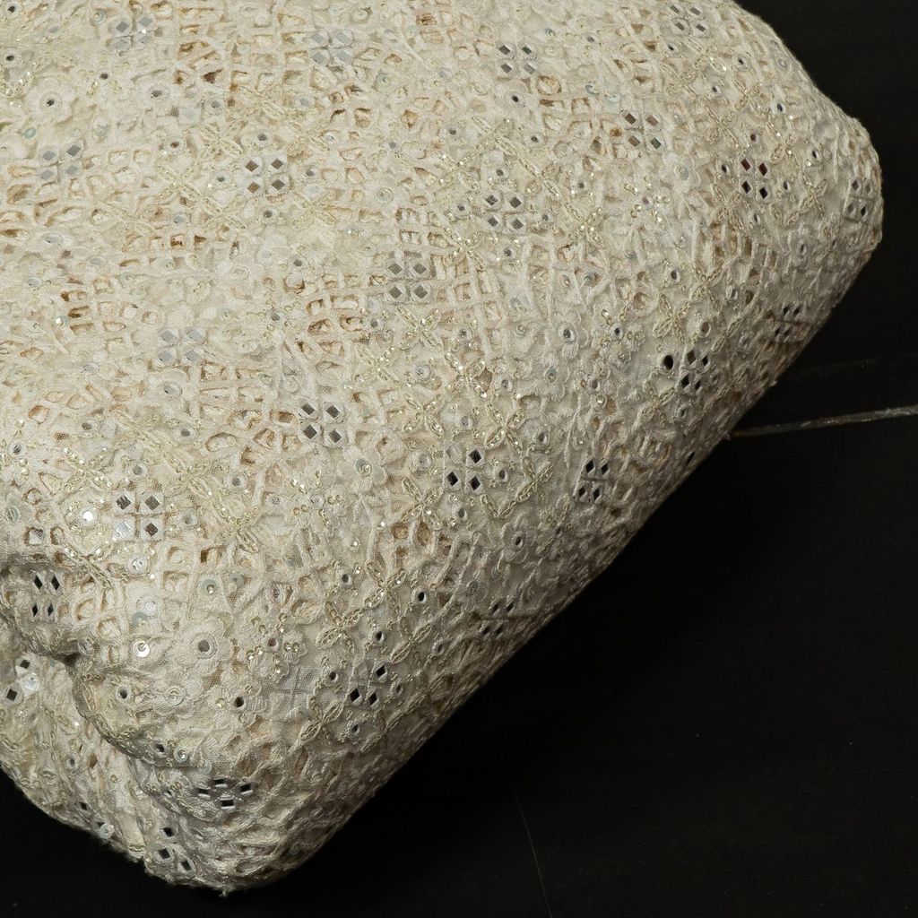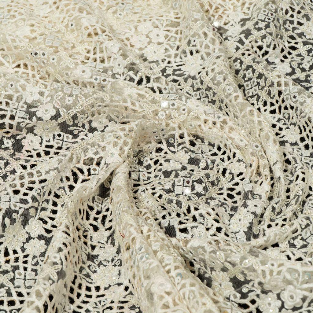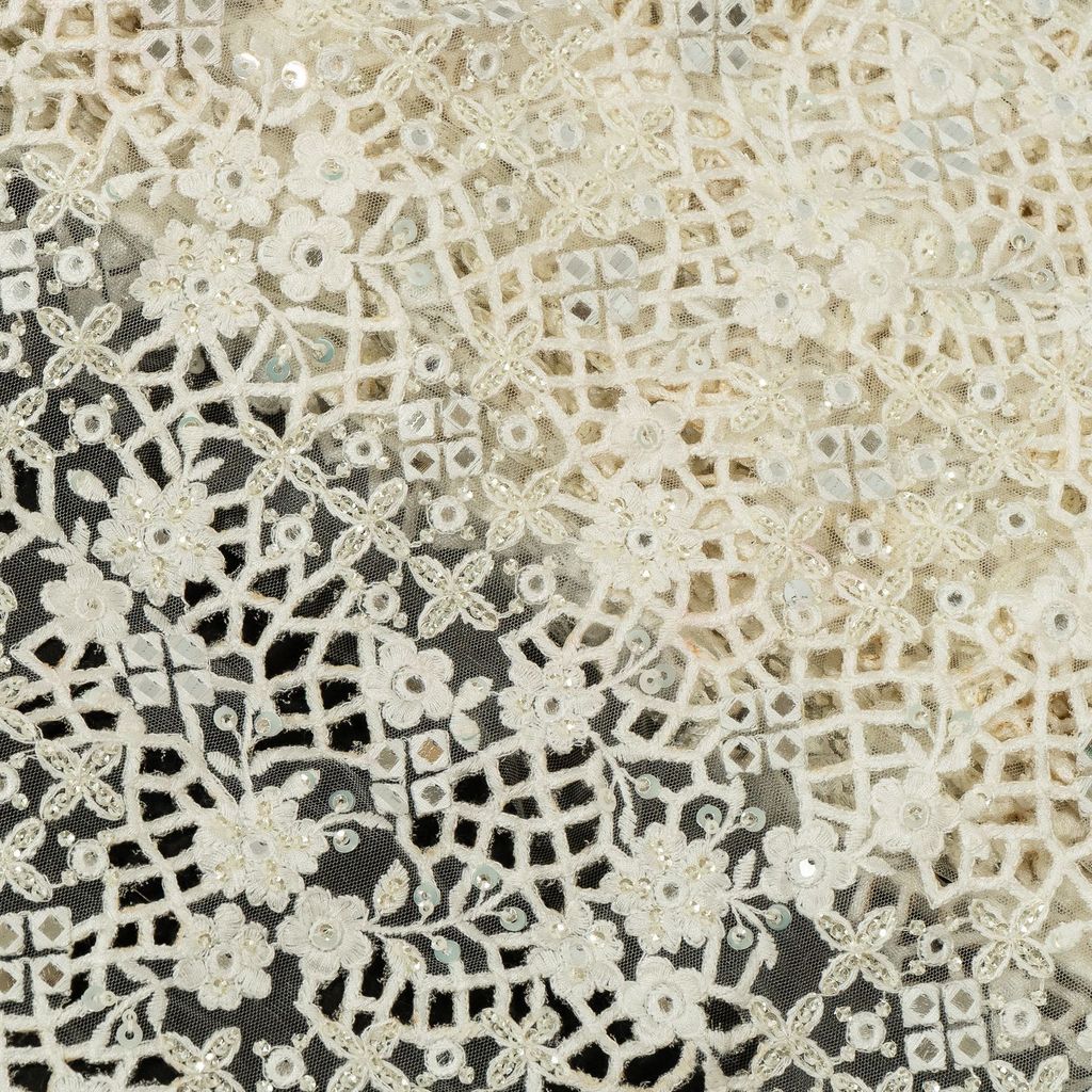 | Fabric Name | White Dyeable Net Cutwork Embroidered Fabric |