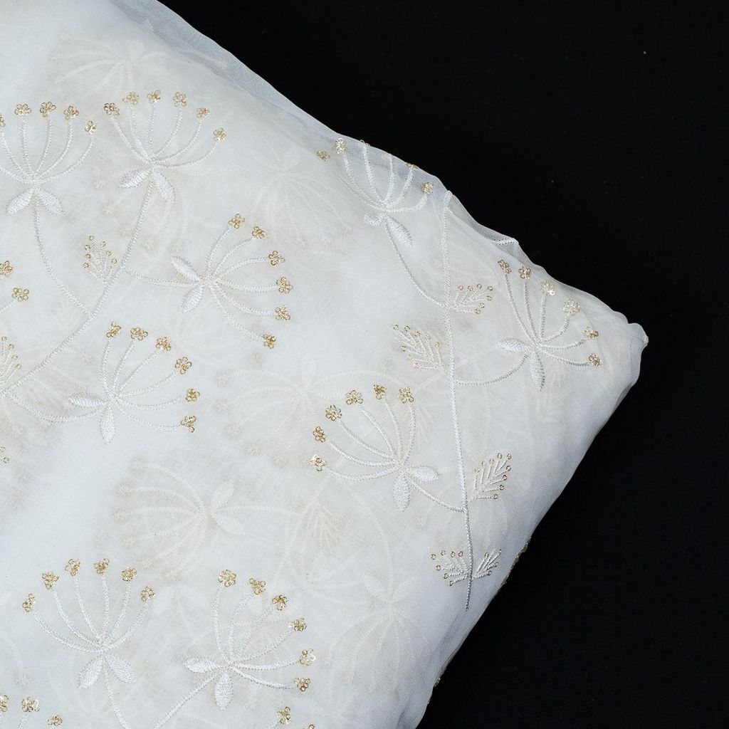 | Fabric Name | White Dyeable Organza Embroidered Fabric |