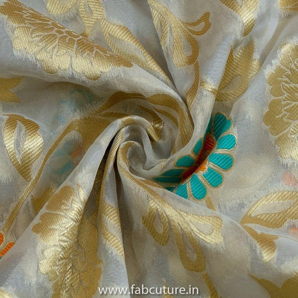 This is from FabCouture Organza Jacquard Collection and the fabric is sheer and dainty organza with a colourful floral pattern in jacquard in multicolour. It is a rich fabric for kaftans, shararas, lehengas, sarees or any silhoutte or occasion wear. SKU:100215199