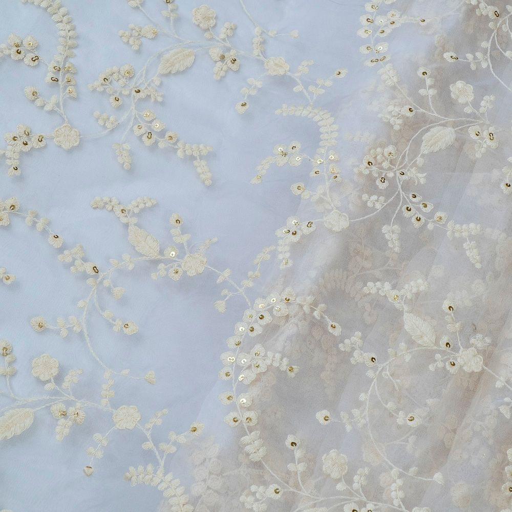 | Fabric Name | White Dyeable Organza Thread Sequins Embroidery |