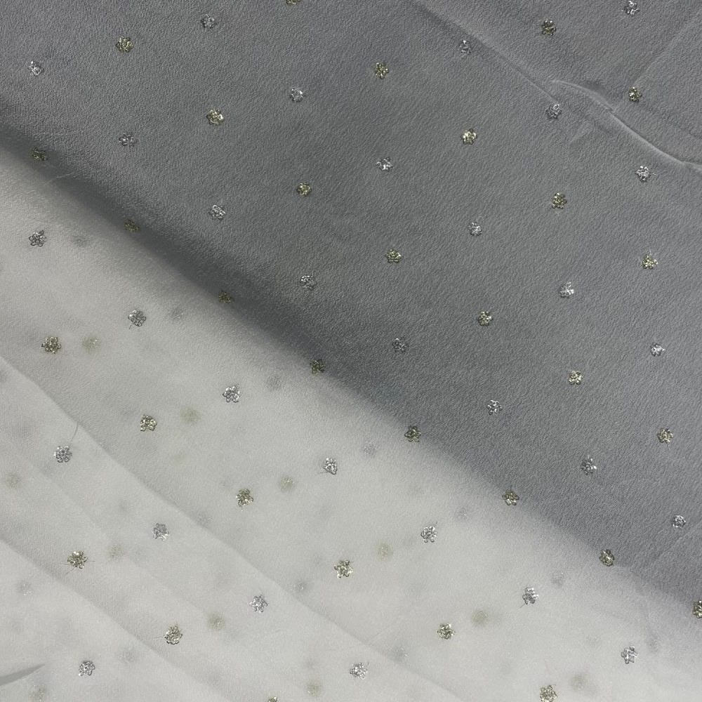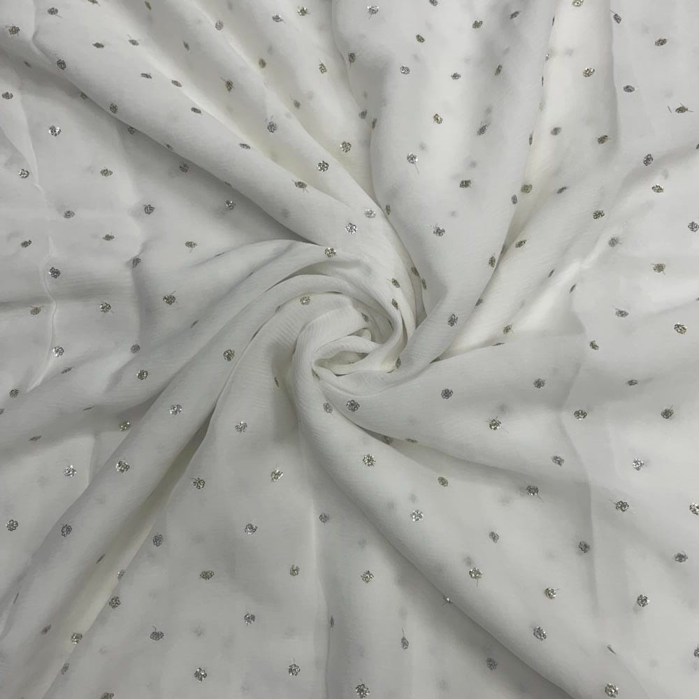| Fabric Name | White Dyeable Shine Dots Chinon Embroidered Fabric |