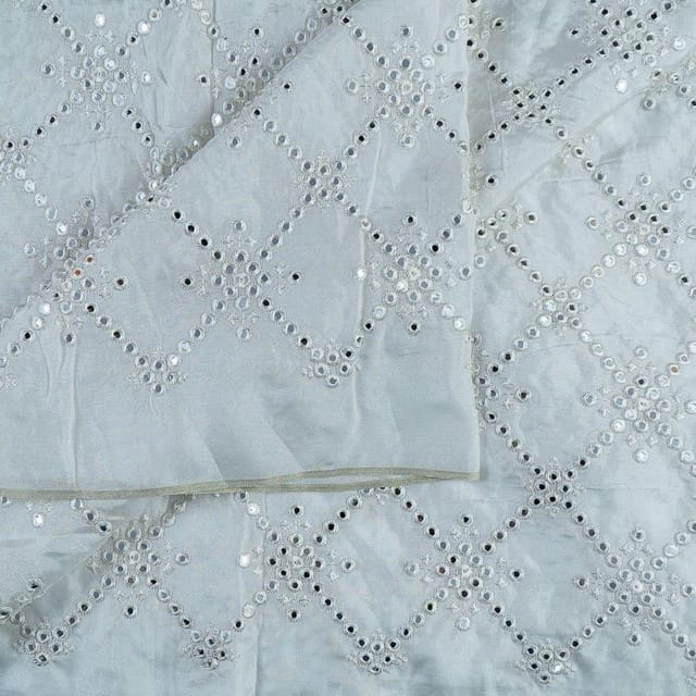 Fabric Name | White Dyeable Upada Faux Mirror Embroidery |
