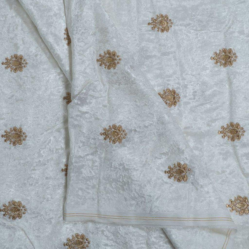 | Fabric Name | White Dyeable Viscose Velvet Embroidered Fabric |