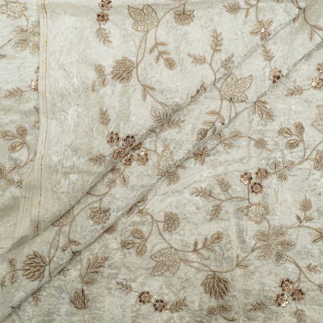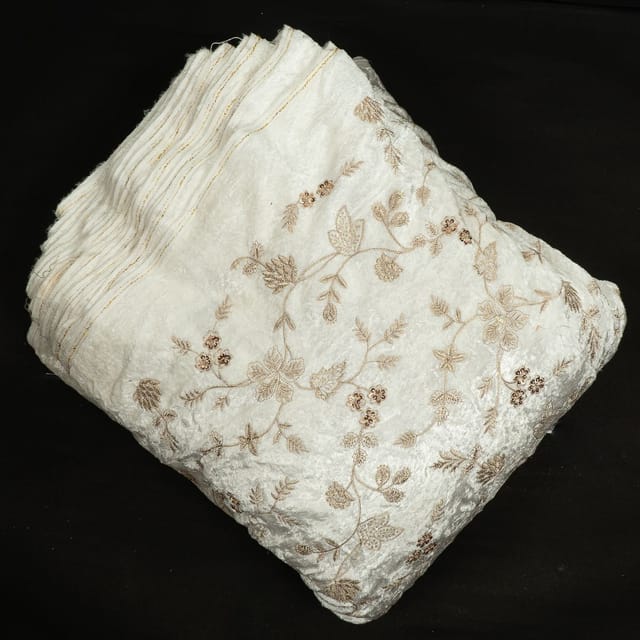 Indulge in luxury with our White Dyeable Viscose Velvet Embroidered Fabric, designed to bring elegance and sophistication to your creations. Made from premium viscose velvet, this fabric exudes a soft, plush texture and a lustrous finish that is perfect for crafting exquisite outfits.