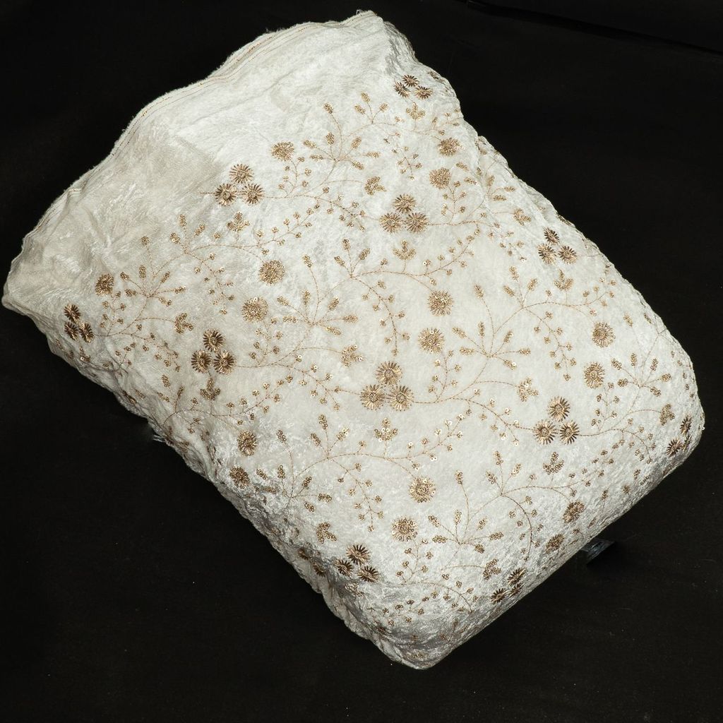 Indulge in luxury with our White Dyeable Viscose Velvet Embroidered Fabric, designed to bring elegance and sophistication to your creations. Made from premium viscose velvet, this fabric exudes a soft, plush texture and a lustrous finish that is perfect for crafting exquisite outfits.