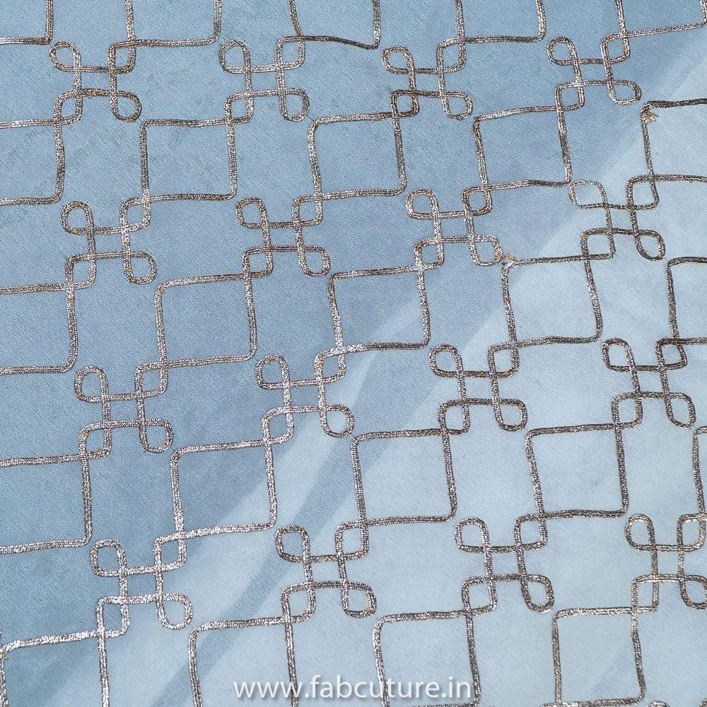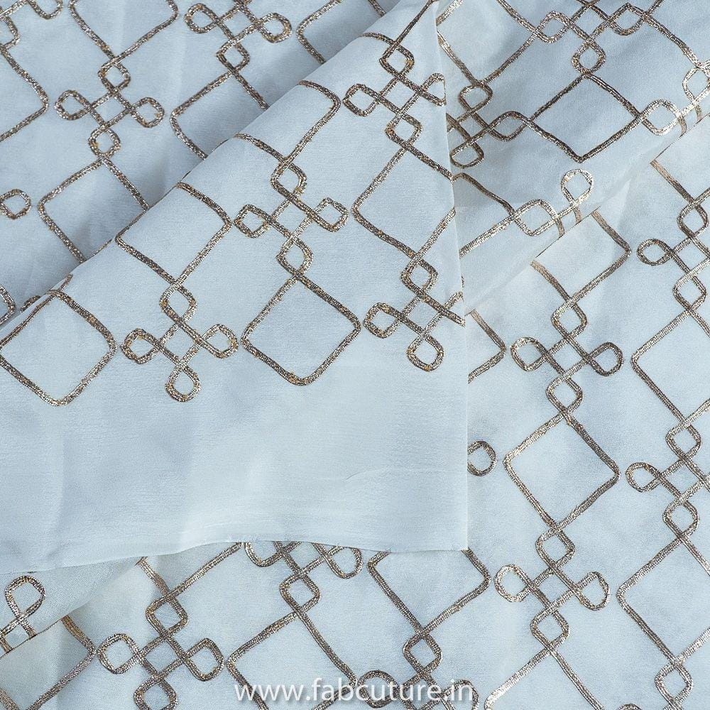 White Chinon Chiffon With Golden Gota Embroidery , Can Used for making Dupattas, lehengas-choli, blouses, skirts, shirts, tops this fabric is fabulous for all, it s a dyeable fabirc. SKU:100215979 CHINON EMB D.NO 12636
