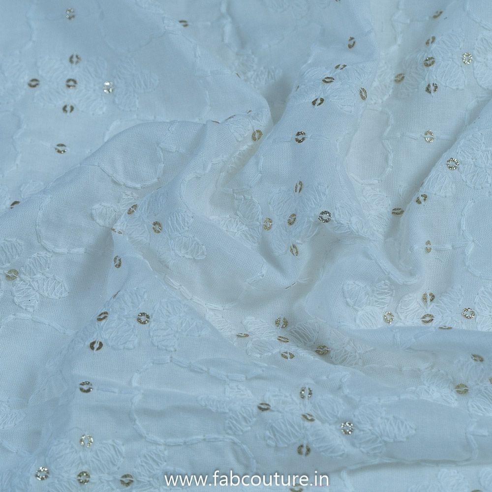 This fabric is from FabCouture Cotton Embroidery Collection. The base is soft, flowy, cool and breathable cotton which is dyeable as well. The embroidery style is lakhnawi which gives it a rich taste and style. SKU: 100212896 COTTON LAKHNAVI D.NO 612